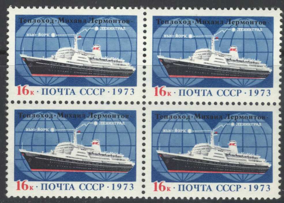Серия в кв.блоках с разновидностью (большая точка после Нью-Йорк — во всех 4-х марках)