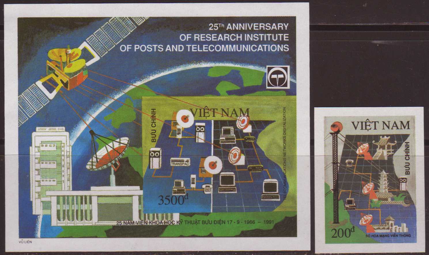 | N78999 | Вьетнам. 1991. 25 лет Институту исследований почты и телекоммуникаций. Серия 1 марка и сувенирный лист, без зуб. (**) |  | 610 |  |