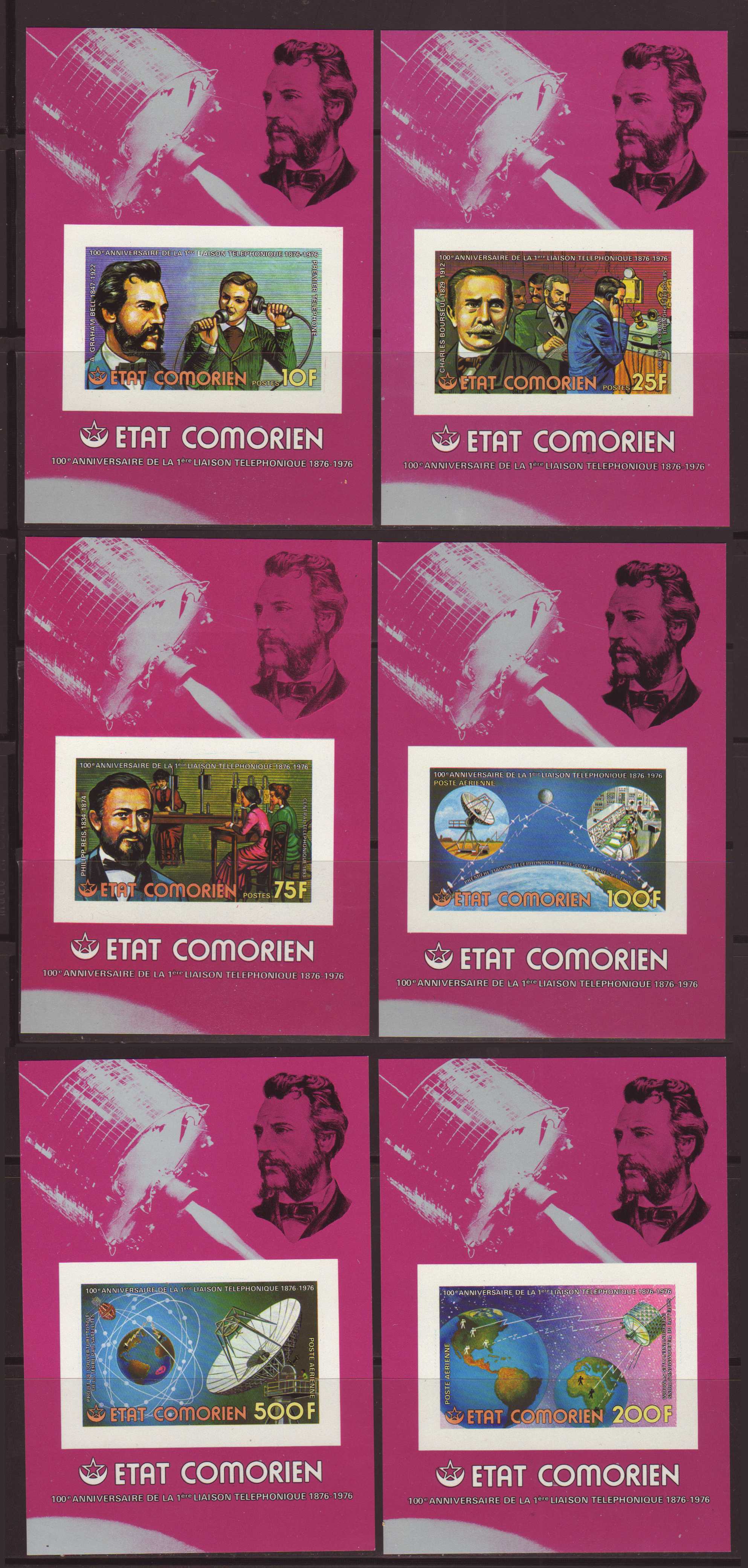 | N83251 | Коморские острова. 1976. 100-летие телефонной связи. Спутники связи. Серия 6 сувенирных листов, без зуб. (**) |  | 3000 |  |