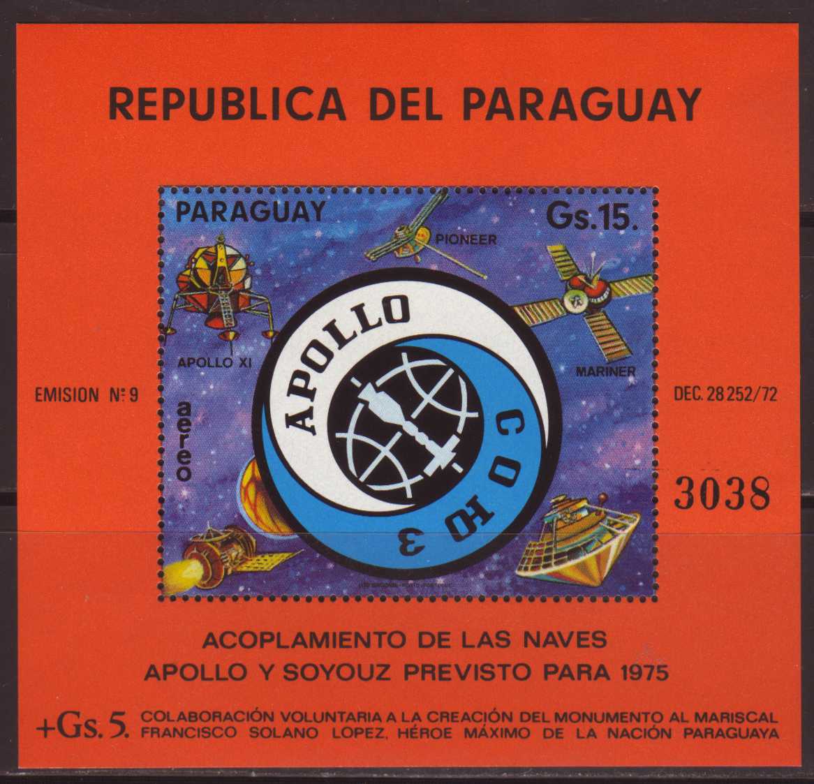 | N83268 | Парагвай. 1974. Союз-Аполлон. Сувенирный лист, (**) |  | 2080 |  |