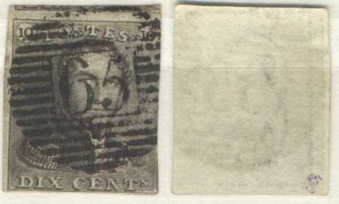 | N4887 | Бельгия 1850. Водяной знак с рамкой, марка гашеная, без тонких мест |  | 10800 |  |