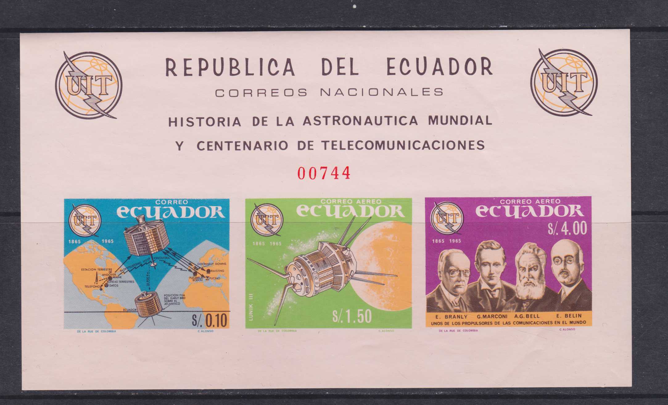 | N121448 | Эквадор 1966. Иследование космоса. Сувенирный лист 3 марки без зуб. (**) |  | 2450 |  |