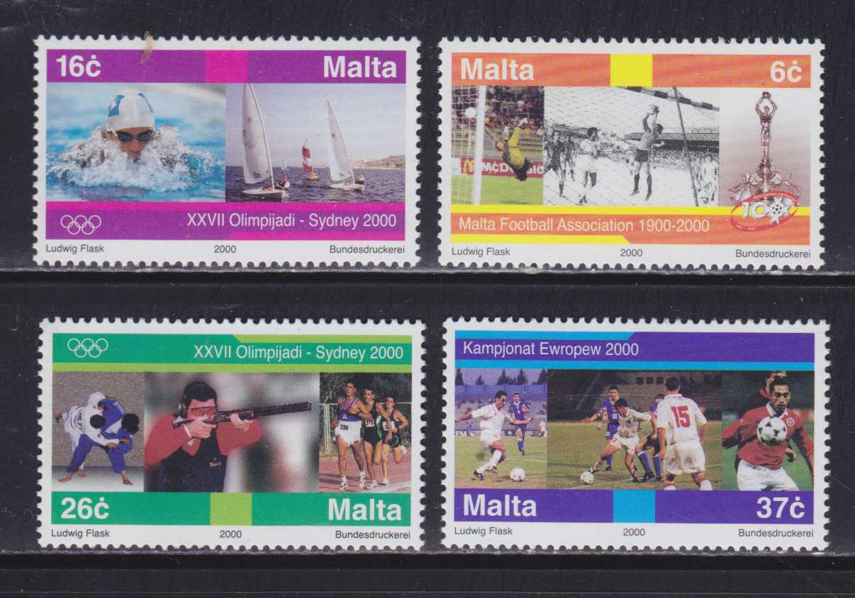 | N123646 | Мальта 2000. Олимпийские игры в Сиднее (в том числе футбол). Серия 4 марки (**) |  | 250 |  |