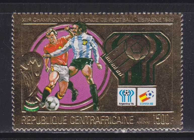 | N125311 | Центральная Африканская республика 1983. Футболисты. Марка с тиснением на золотой фольге (**) (Scott08-35$) |  | 2520 |  |