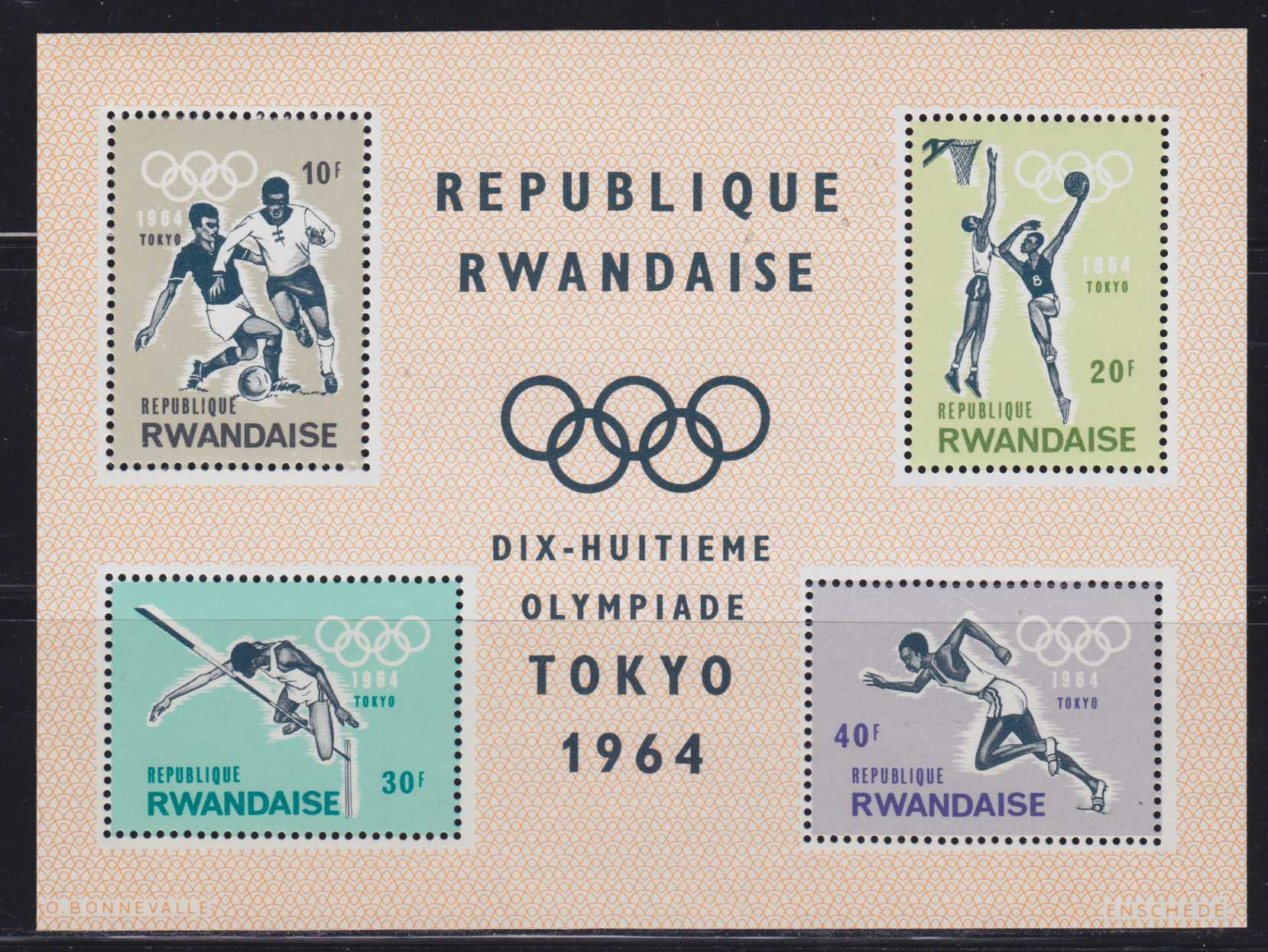 | N126394 | Руанда 1964. Олимпийские игры (в том числе футбол). Сувенирный лист (**) |  | 300 |  |