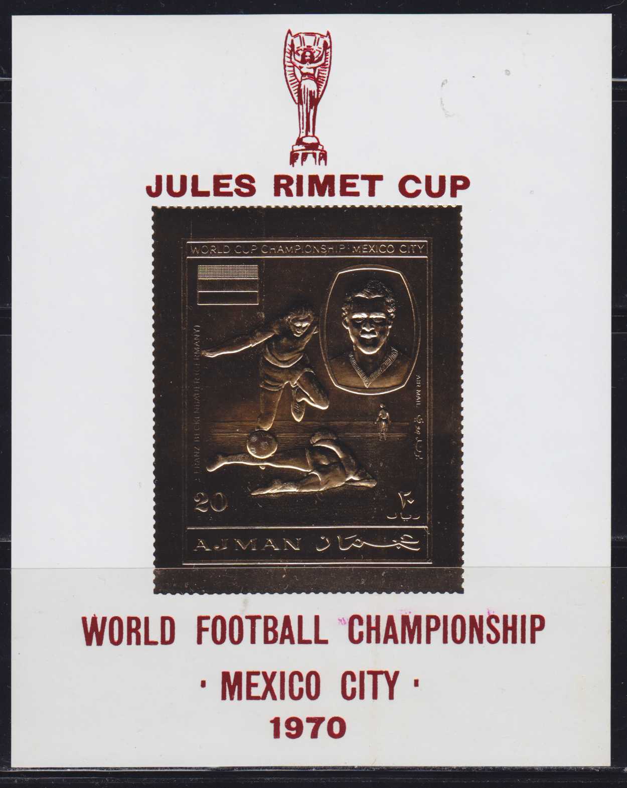 | N126743 | Аджман. Футболист. Сувенирный лист с тиснением на золотой фольге (**) |  | 2305 |  |