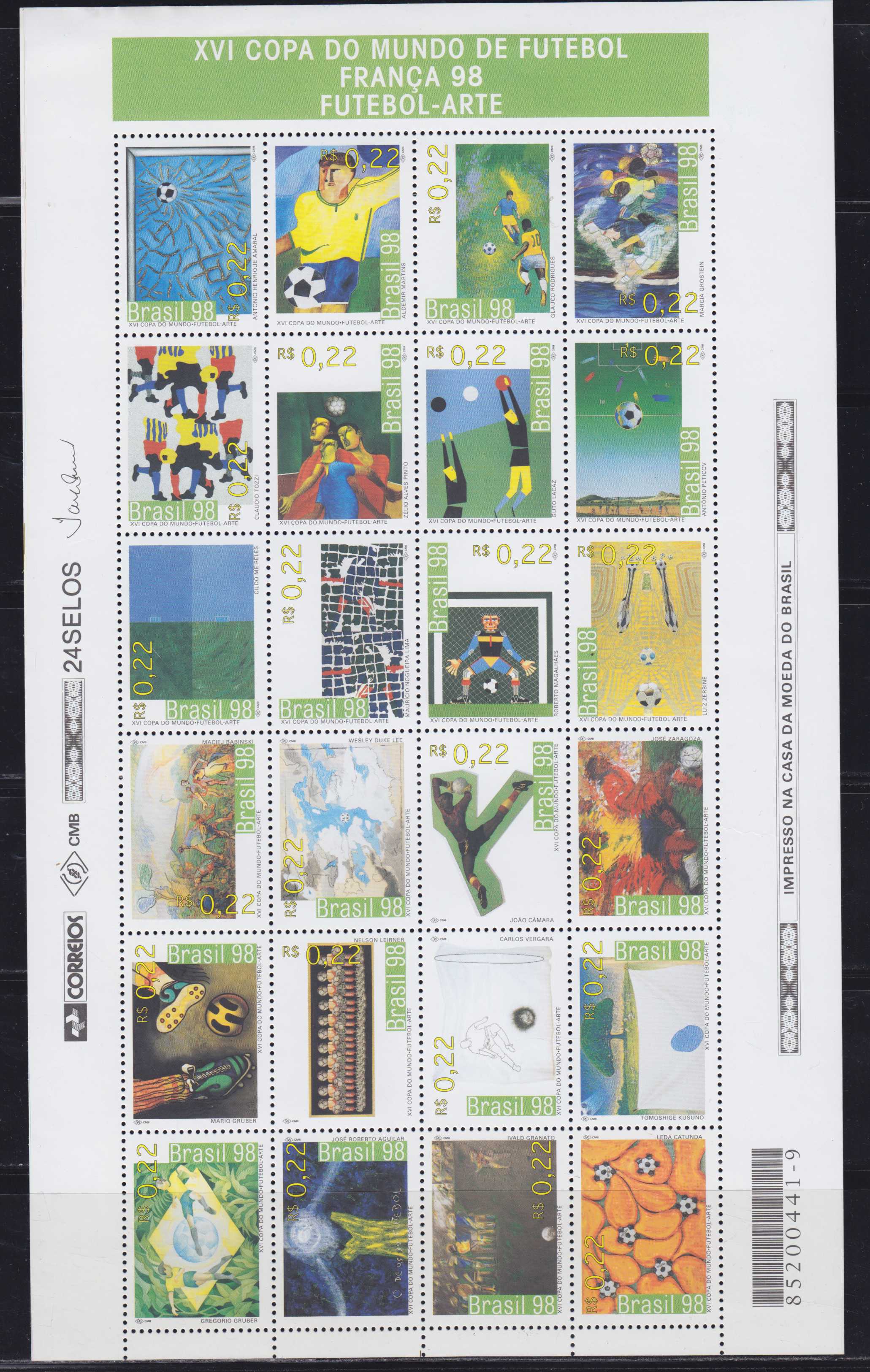 Бразилия 2004. Чемпионат мира по футболу во Франции. Сувенирный лист 24 марки (**) (Scott16-22$)