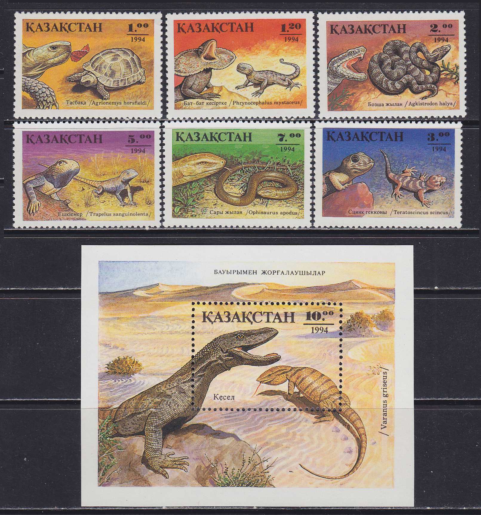 | N133133 | Казахстан 1994. Пресмыкающие. Серия 6 марок и сувенирный лист (**) |  | 650 |  |