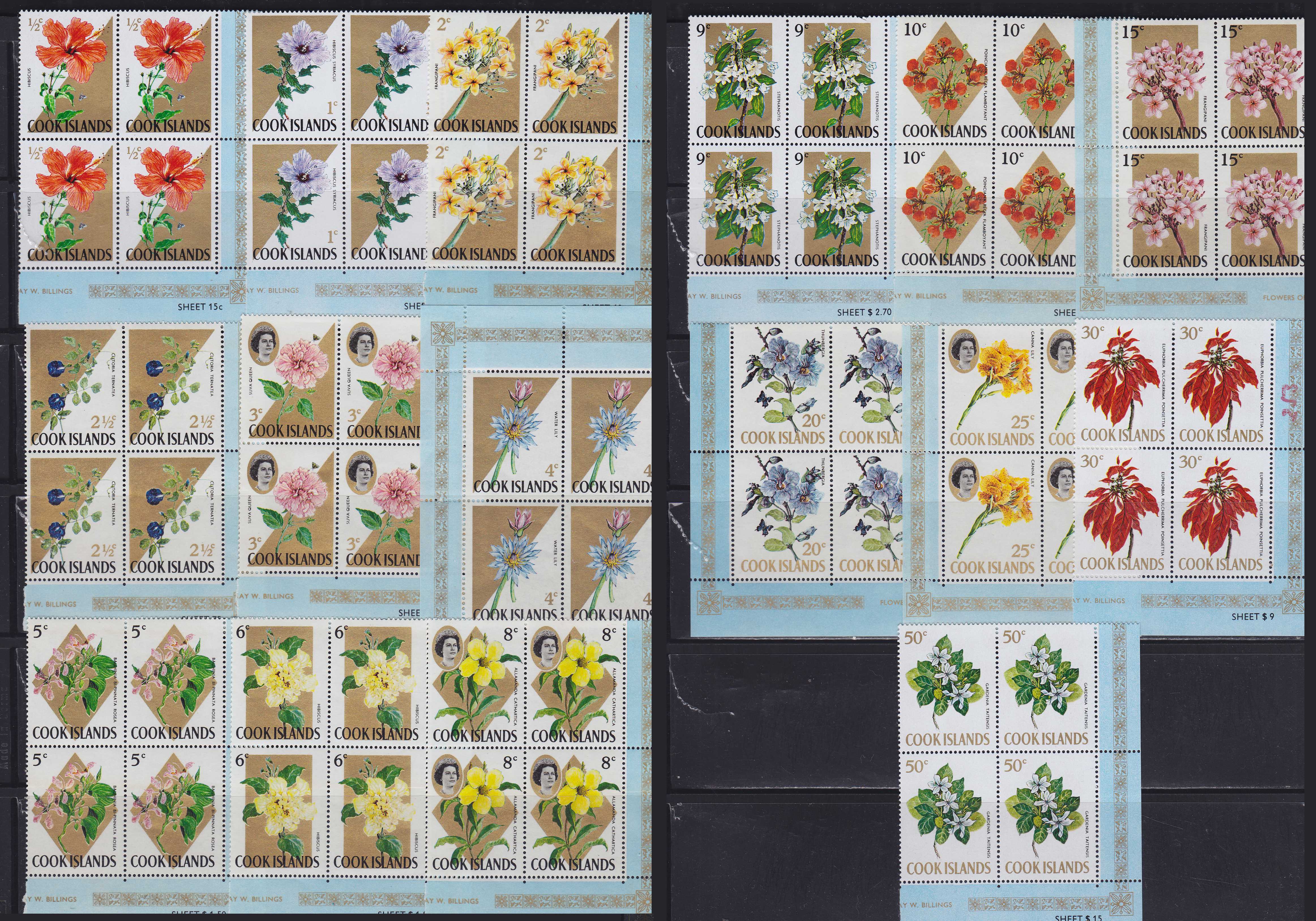 | N138383 | Острова Кука 1971. Цветы. Серия 5 марок в квартблоках с перепечаткой цены (**) |  | 505 |  |