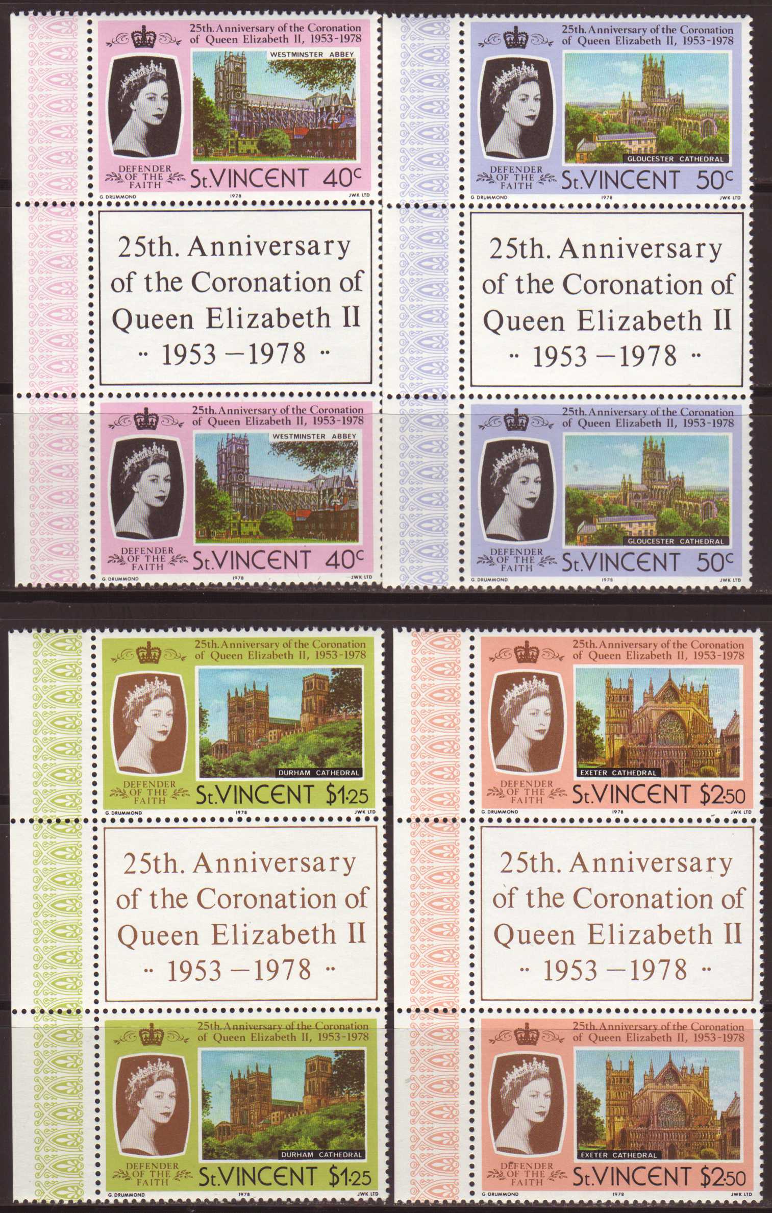| N12257 | Сент-Винсент. 1978. 25-я годовщина коронации Елизаветы II, серия 4 марки в парах с купоном, (**) |  | 280 |  |