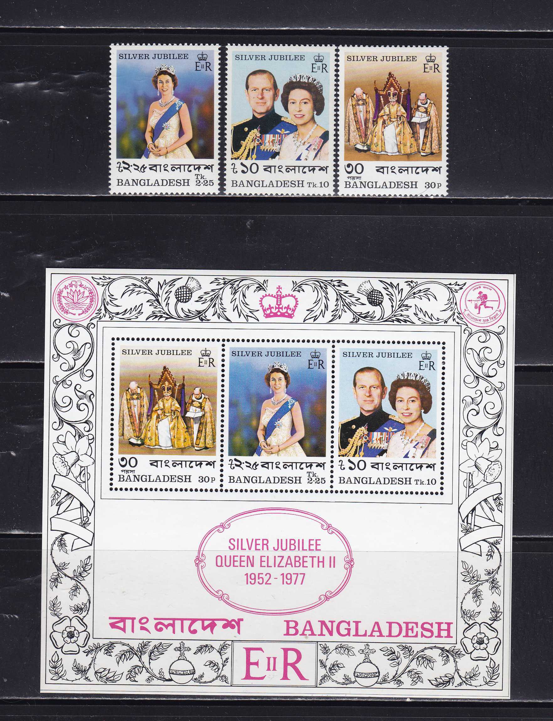 | N140512 | Бангладеш 1977. Елизавета II. Серия 3 марки и сувенирный лист (**) |  | 505 |  |