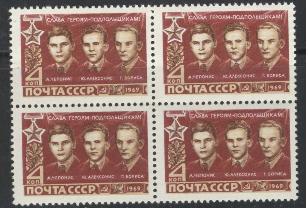 кв блок, в котором 2-ая и четверкая марки с укороченным «к» в слове «октябрю»