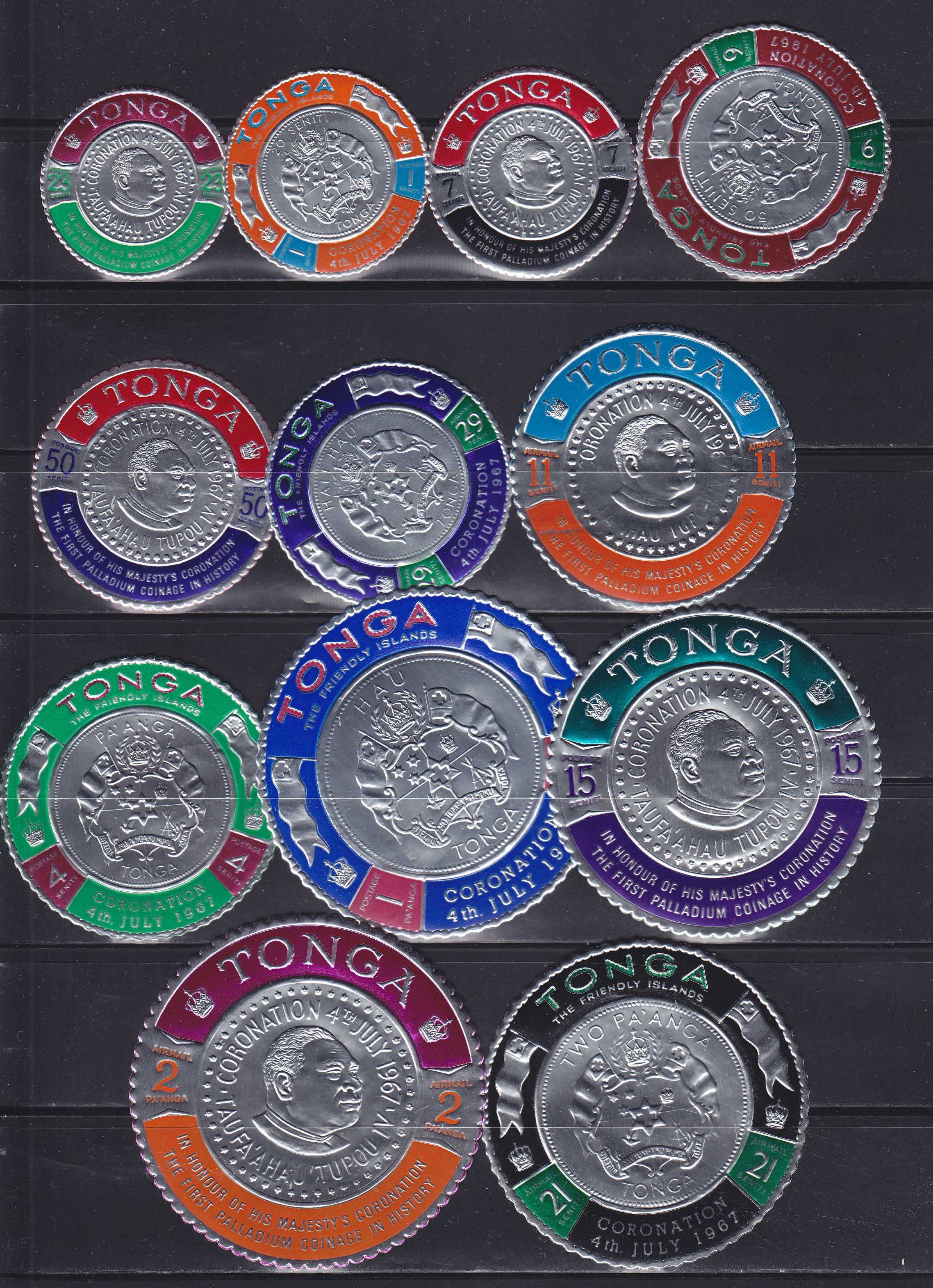N168920Тонга 1967. Король и герб. 12 марок-самоклеек с тиснением на золотой фольге (**)1600Контакт