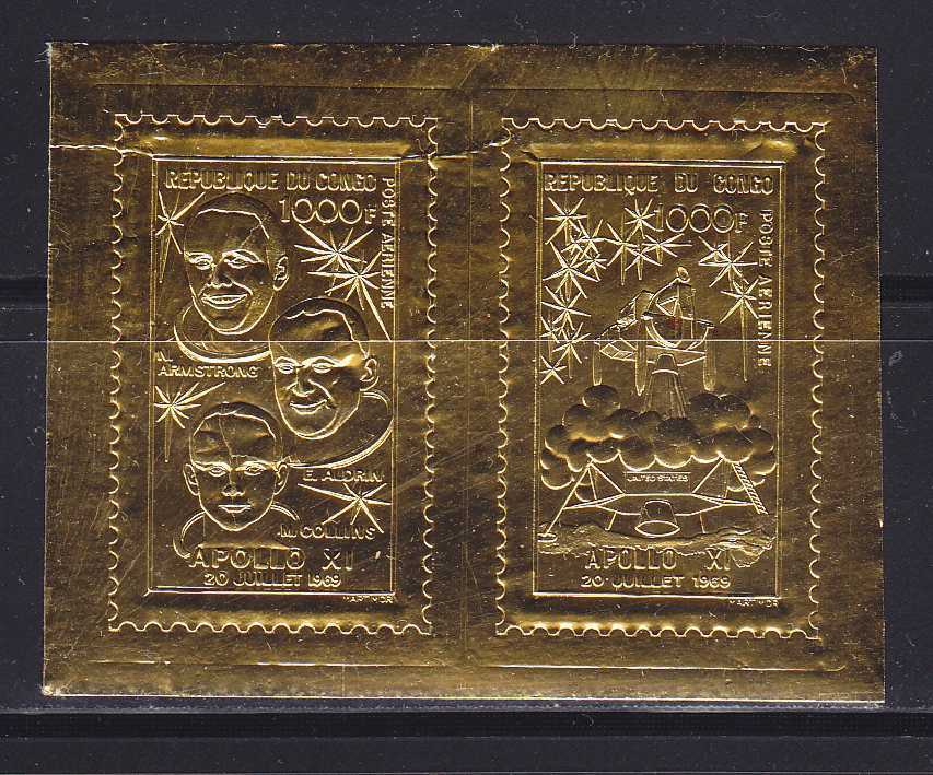 N168921Конго 1969. Астронавты. Сувенирный лист с тиснением на золотой фольге (**) 2800Контакт