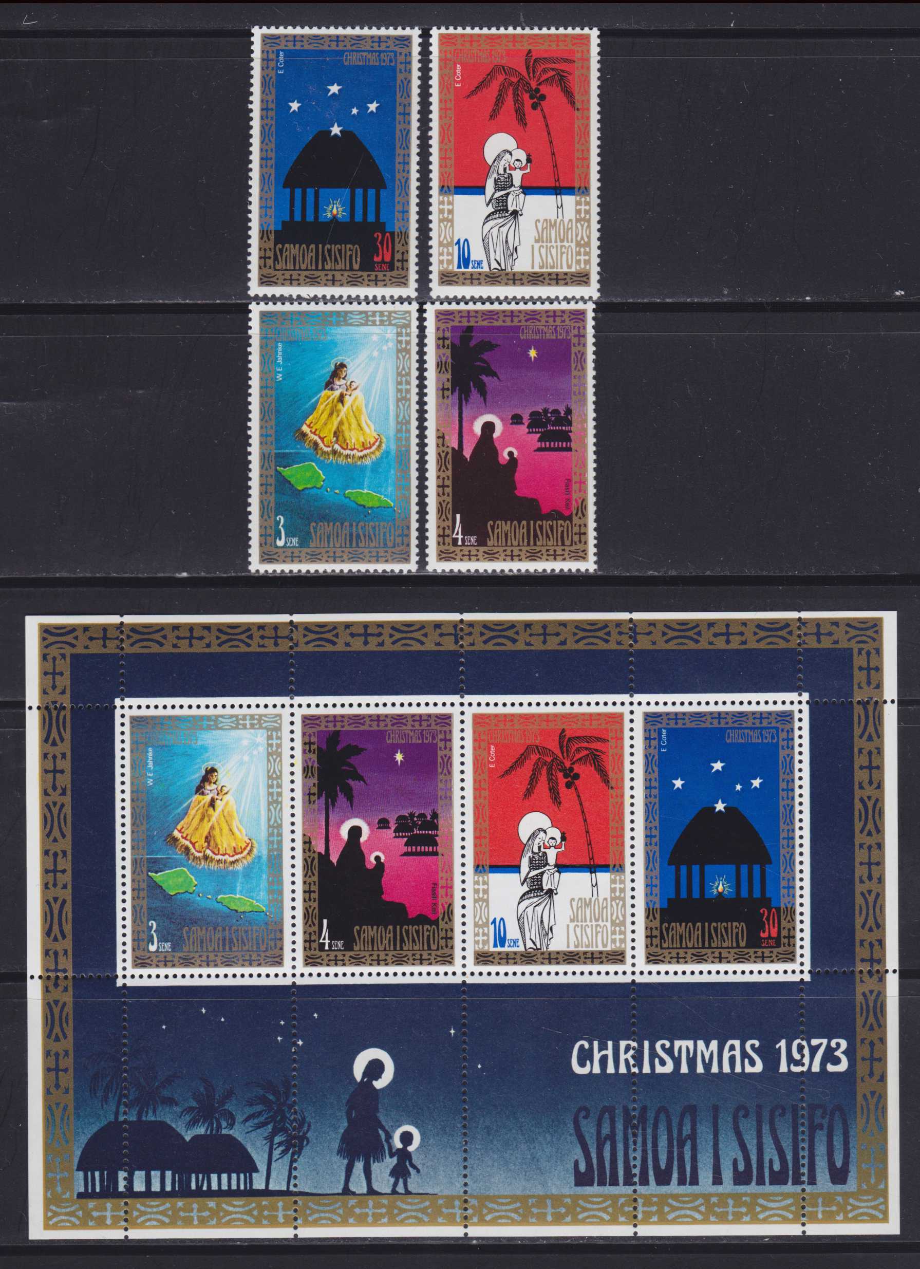 | N164344 | Самоа 1973. Рождество. Серия 4 марки и сувенирный лист (**) |  | 420 |  |