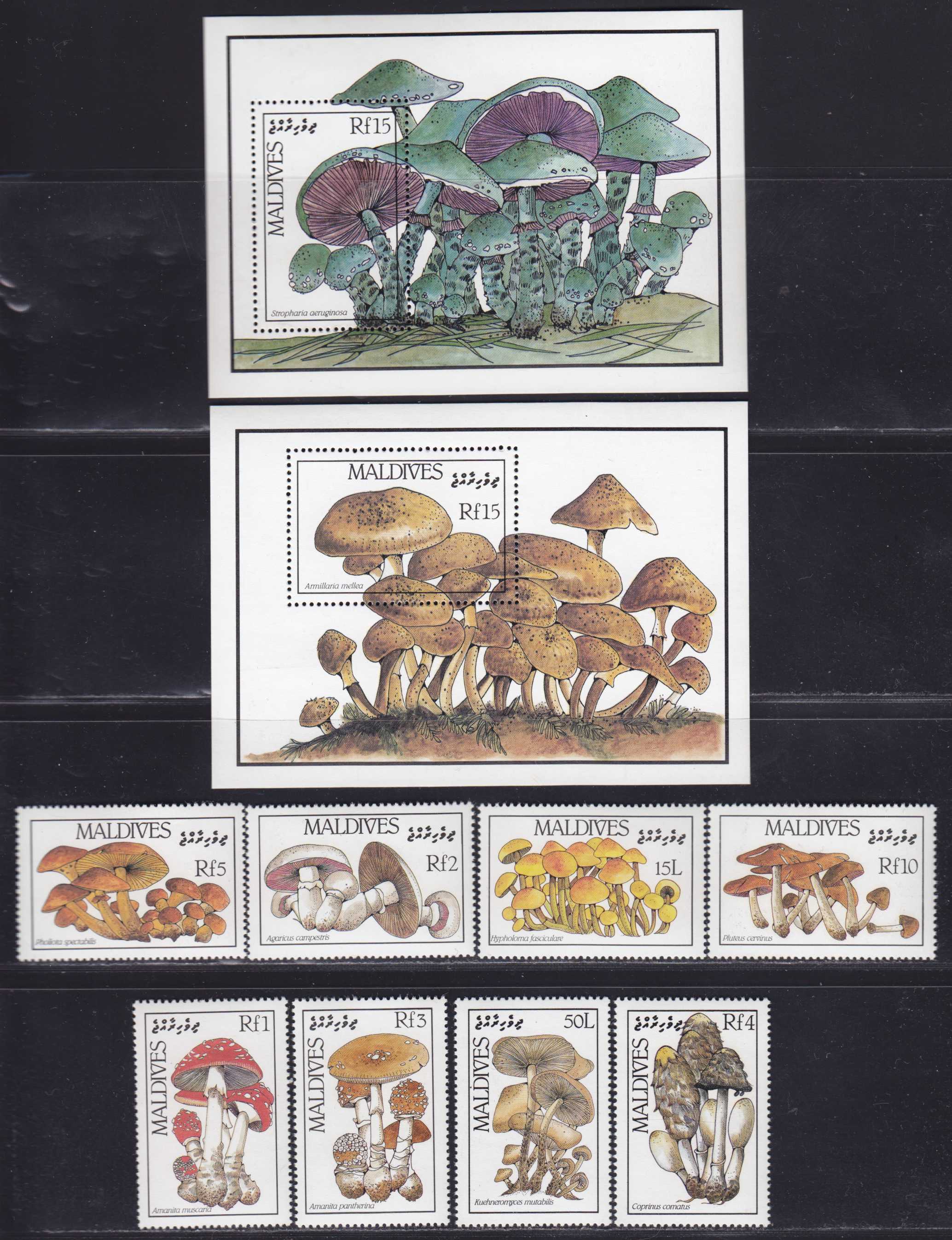 | N161608 | Мальдивские острова 1986. Грибы. Серия 8 марок и 2 блока (**) |  | 1980 |  |