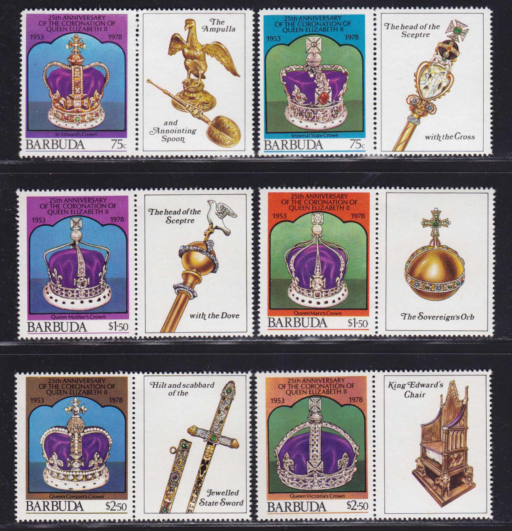 | N159584 | Барбуда 1978. Коронация и геральдические символы. Серия 6 марок с купонами (**) |  | 360 |  |