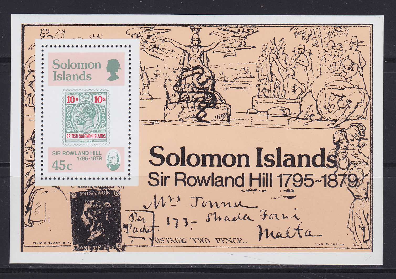 N168262Соломоновы острова 1979. Марка на марке. Сувенирный лист (**) 250Контакт