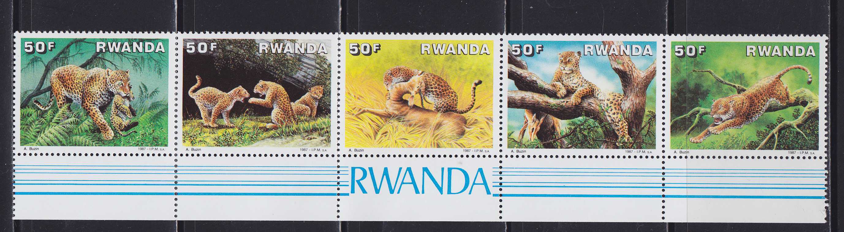 | N158285 | Руанда 1987. Леопарды. Серия 5 марок в сцепке, сгиб по перфорации (**) |  | 3360 |  |