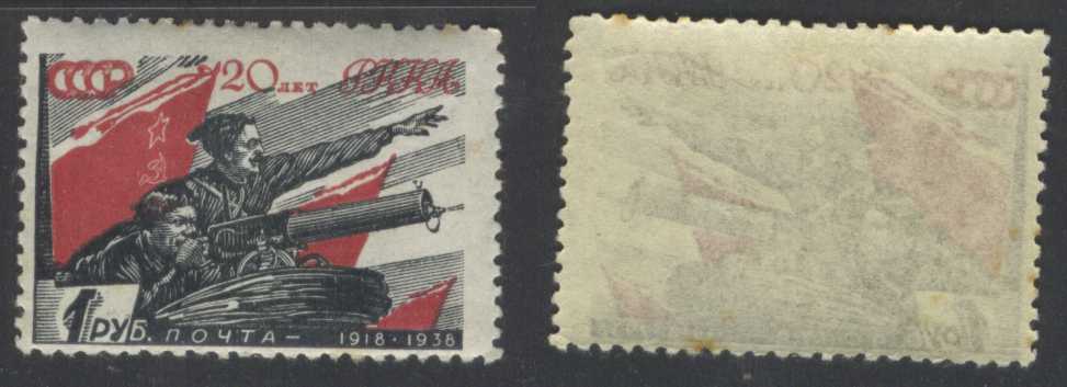 | N154851 | СССР 1938. 20-летие Красной Армии и ВМФ. 1 руб на простой бумаге (*), свой клей, без тонких мест. |  | 265 |  |