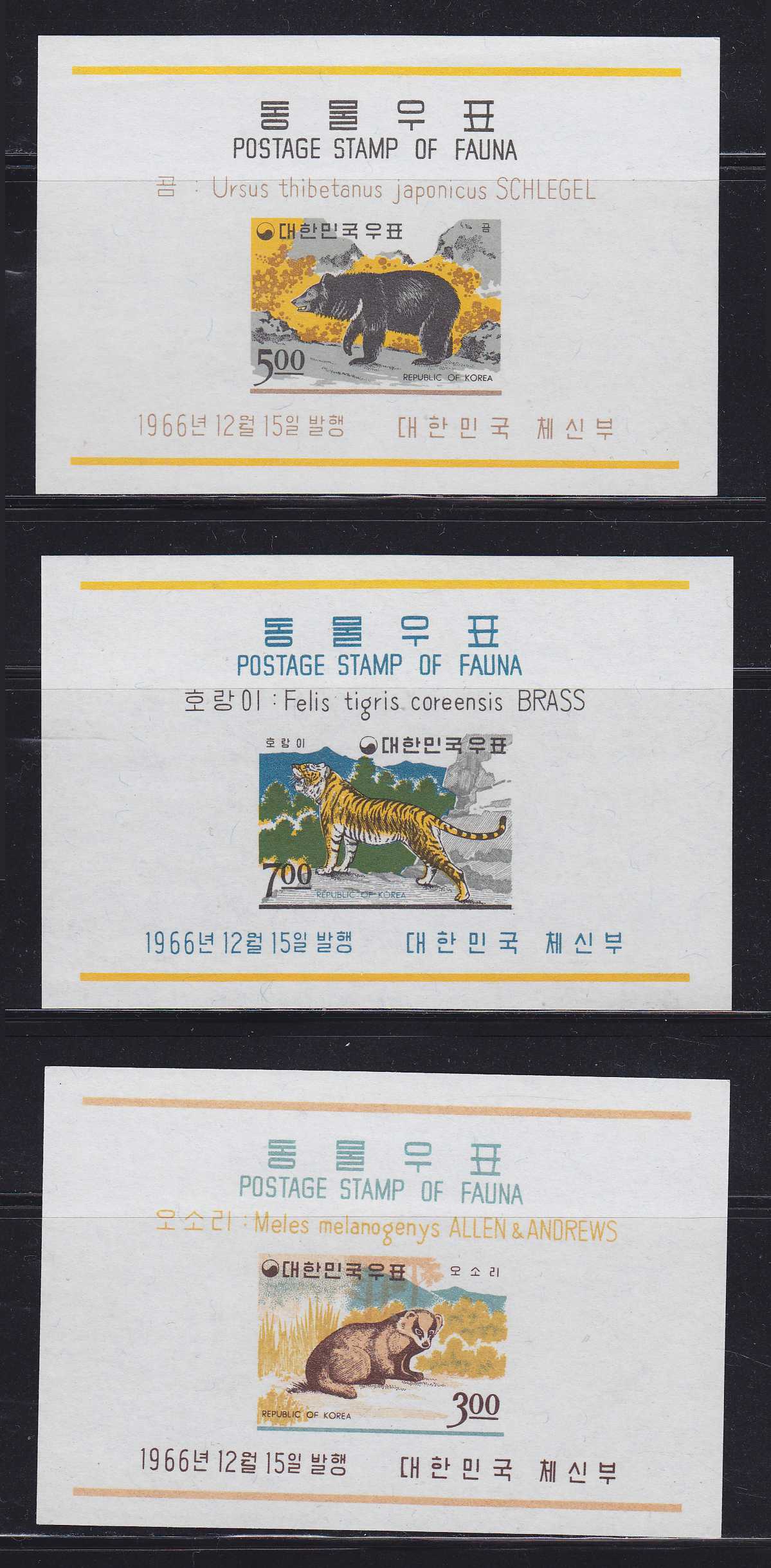 | N154282 | Корея 1966. Фауна. 3 сувенирных листа (**) |  | 650 |  |