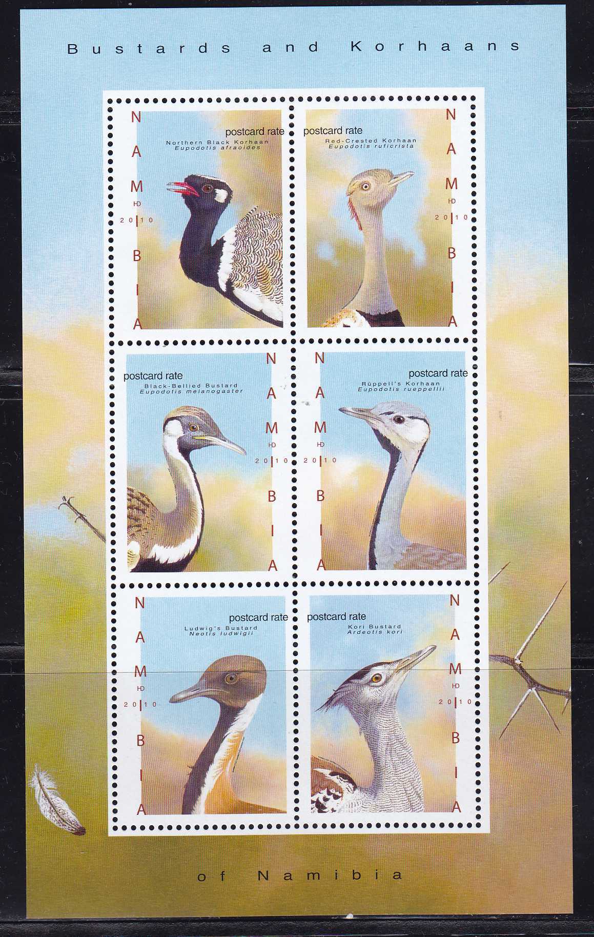 | N152249 | Намибия 2010. Птицы. Сувенирный лист 6 марок (**) |  | 505 |  |