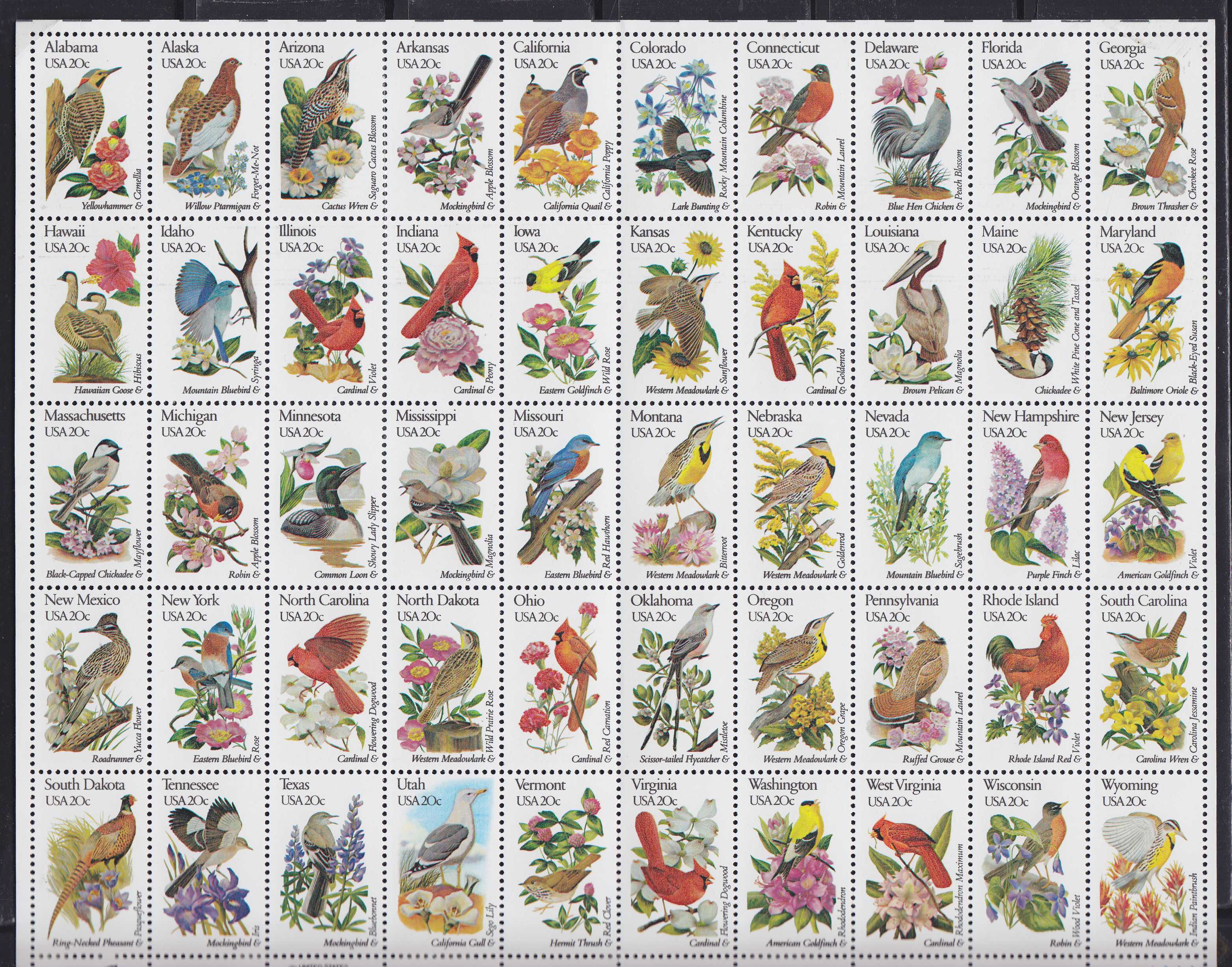 | N151840 | США 1982.Птицы. Сувенирный лист ввиду большого размера лист сложен по вертикальной перфорации (**) |  | 2160 |  |