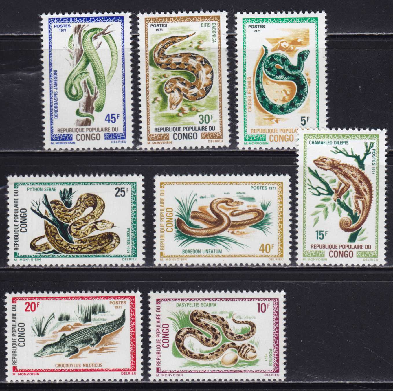 | N151327 | Конго 1971. Пресмыкающие. Серия 8 марок (**) |  | 1300 |  |