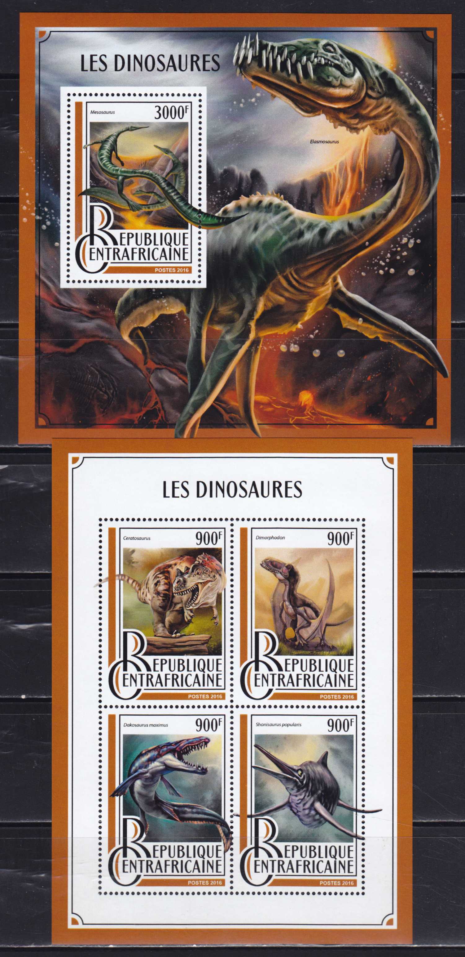 | N150421 | Центральная Африканская республика 2016. Динозавры. Серия 2 сувенирных листа (**) |  | 1030 |  |
