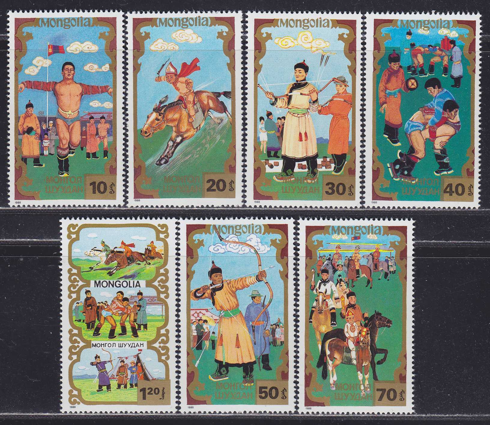 N167403Монголия 1988. Лошади и скачки. Серия 7 марок (**)600Контакт