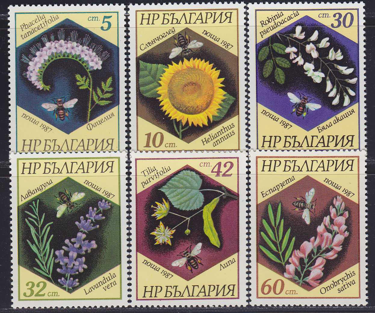 N167116Болгария 1987. Пчелы и цветы. Серия 6 марок (**)480Контакт