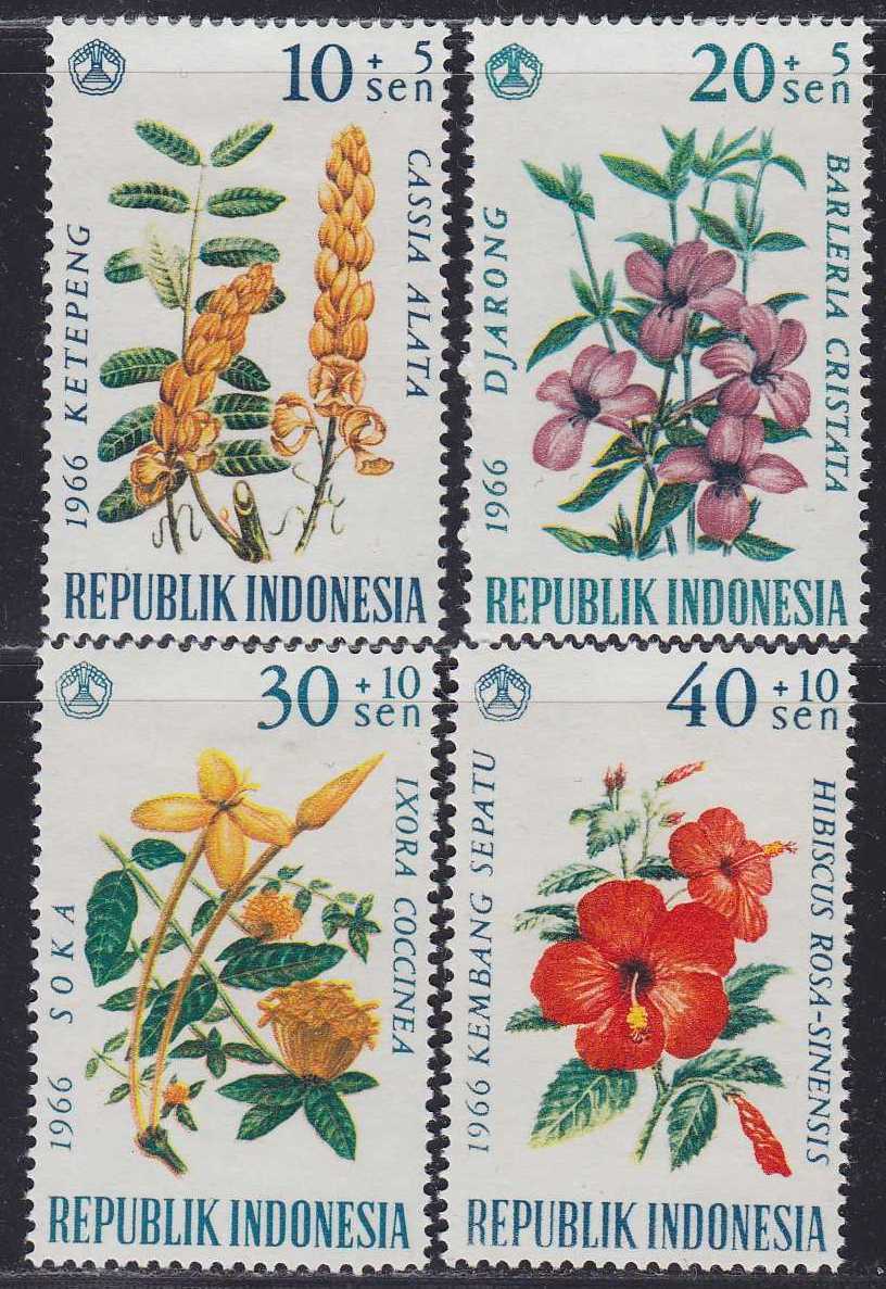 N169074Индонезия 1966. Цветы. Серия 4 марки (*) 200Контакт