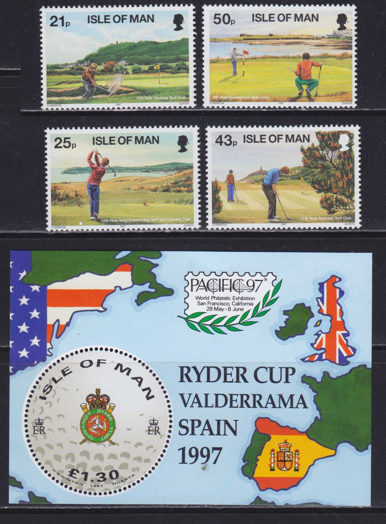 N165195Остров Мэн 1997. Гольф. Серия 4 марки и сувенирный лист (**) 720Контакт