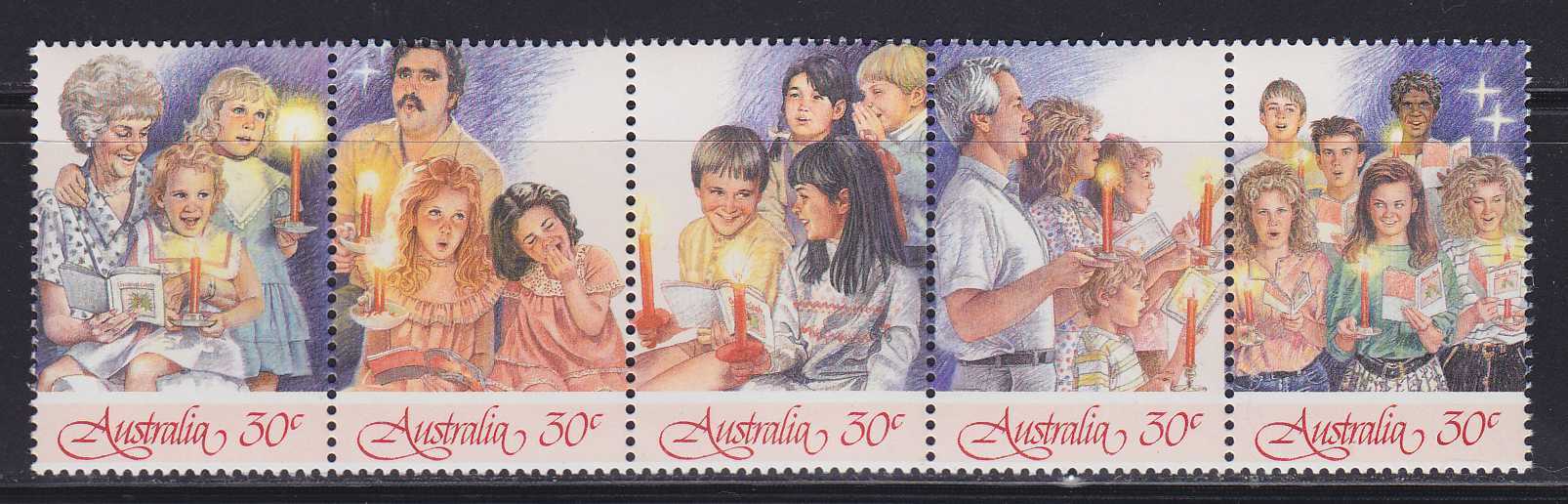 N168329Австралия 1987. Рождество. Сцепка 5 марок (**)200Контакт