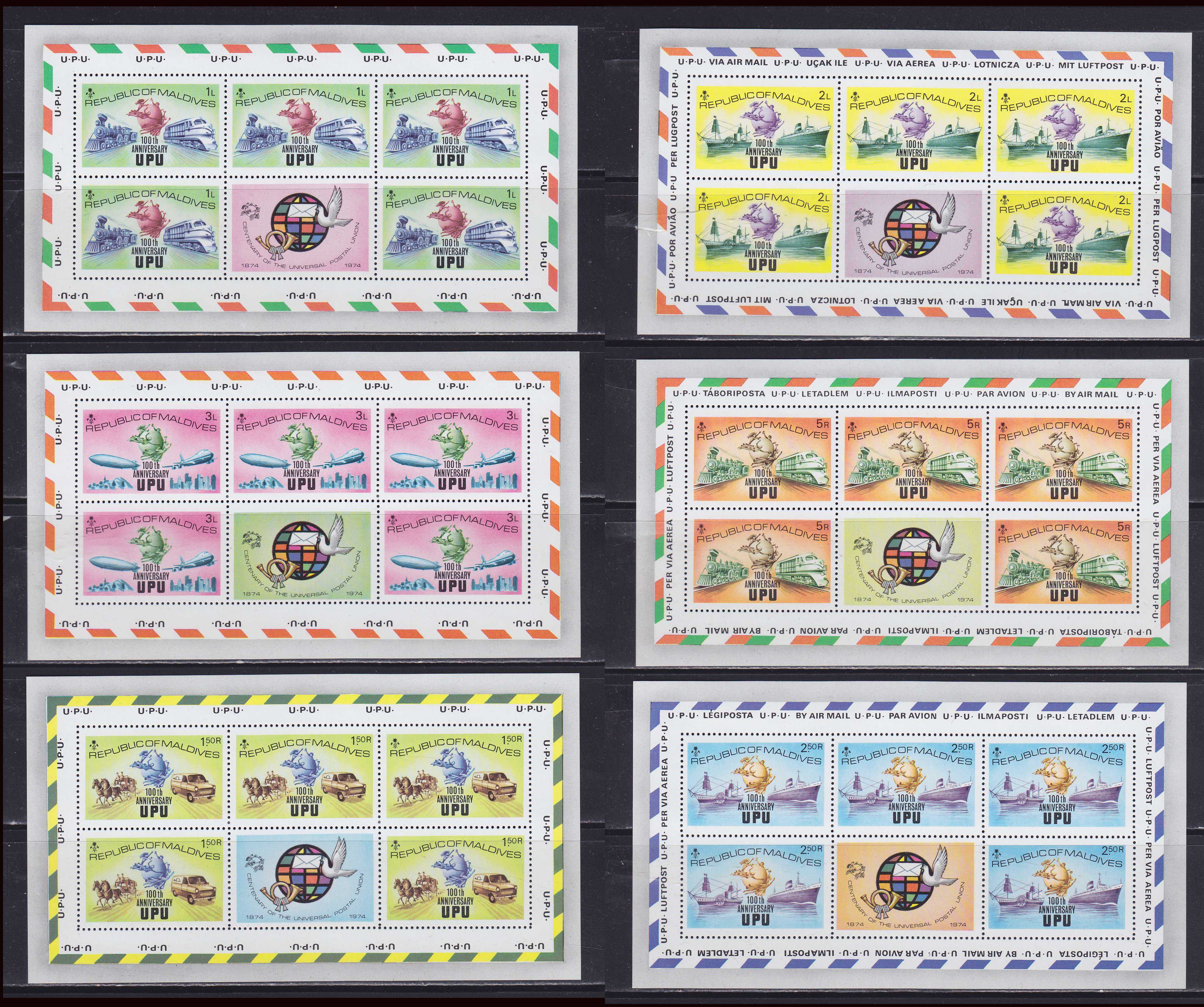 | N149073 | Мальдивские острова 1974. Авиация и др почтовый транспорт. Серия 6 сувенирных листов (**) |  | 2160 |  |