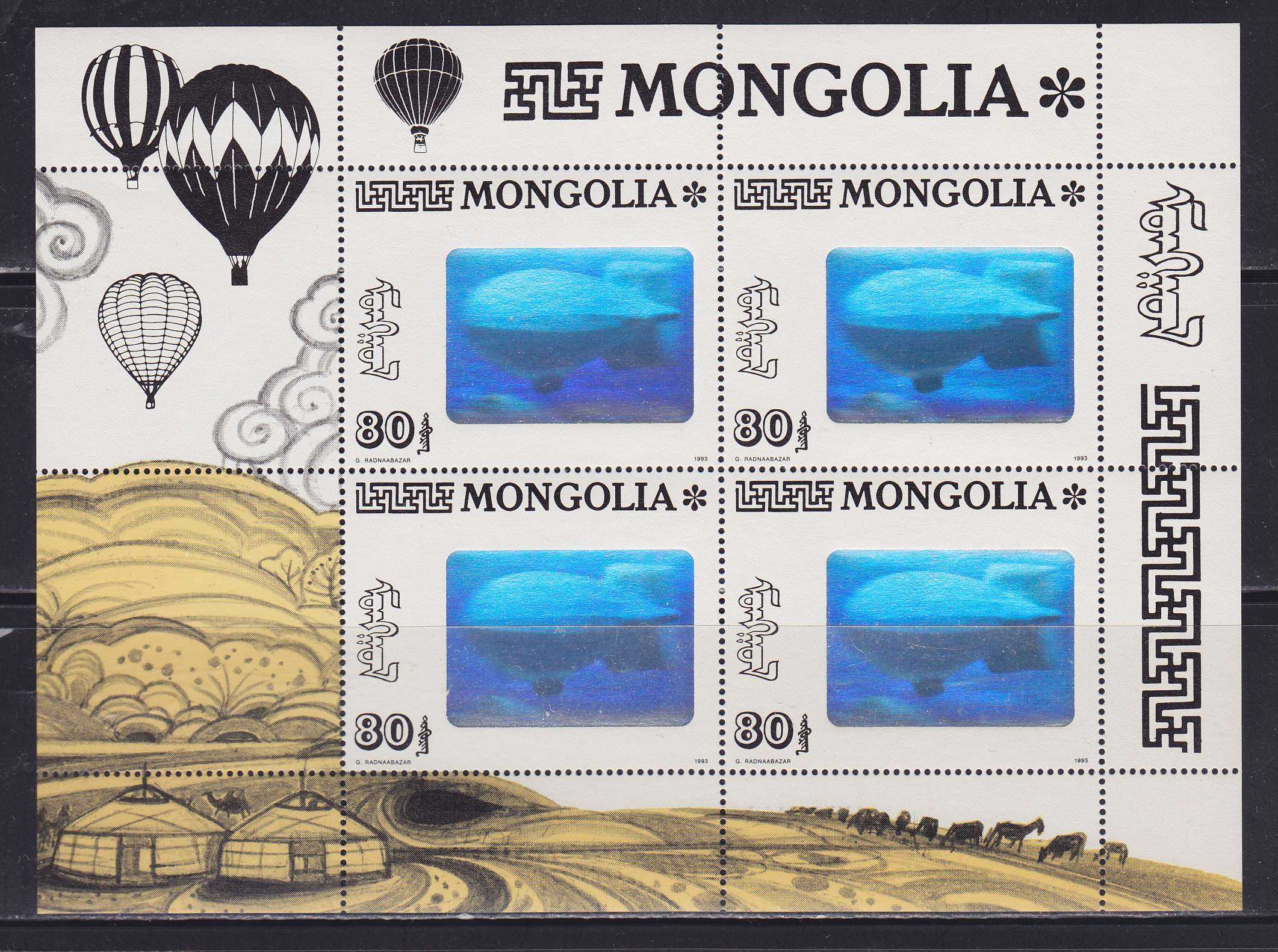 | N149067 | Монголия 1993. Дирижабли. Сувенирный лист с голографическими марками (**) |  | 1300 |  |