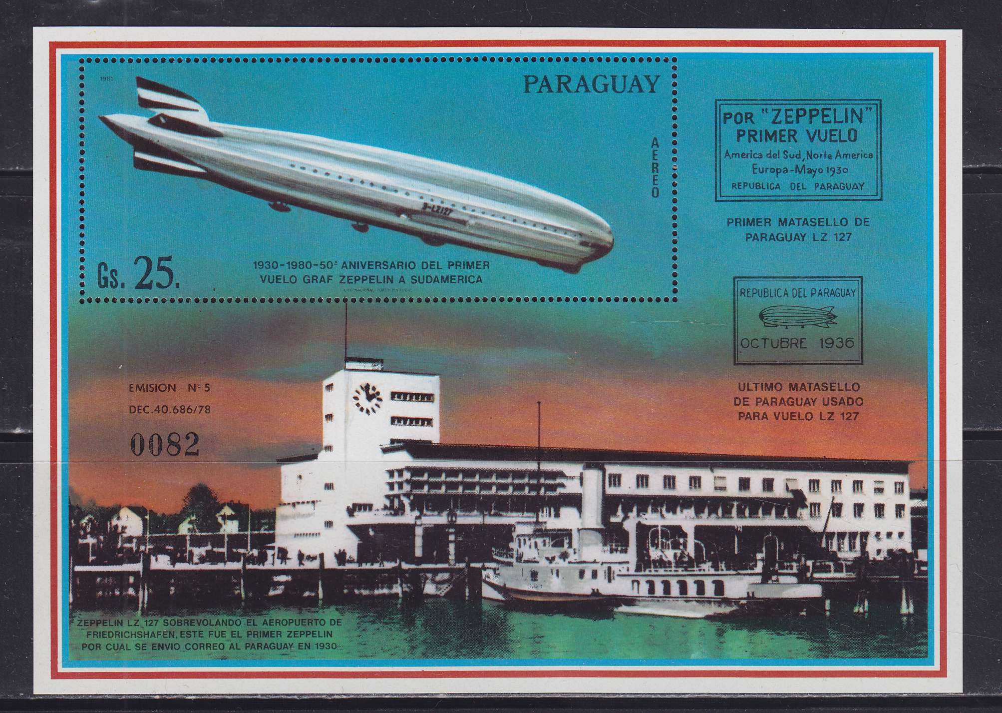 | N148991 | Парагвай 1981. Дирижабль. Сувенирный лист (**) (Scott08-30$) |  | 2160 |  |