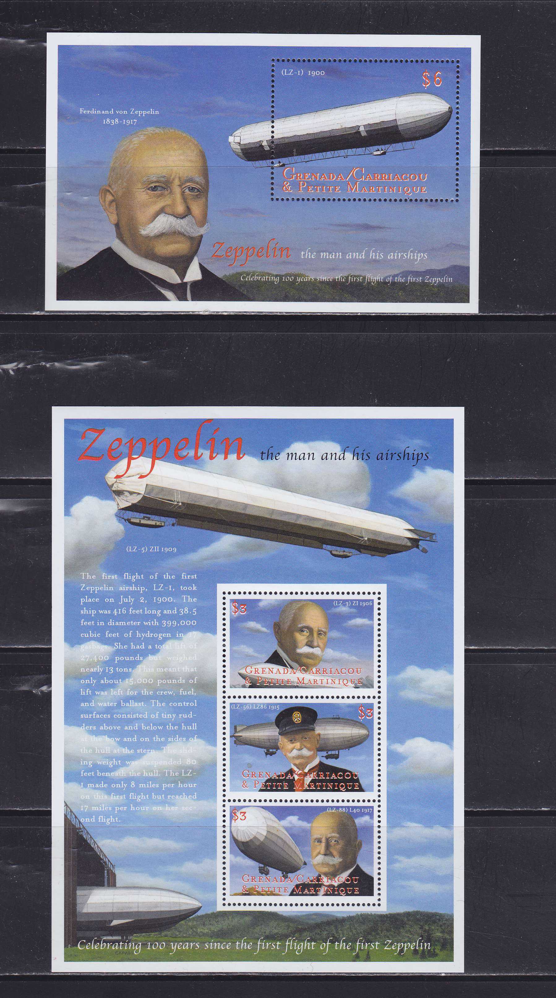 | N149003 | Гренада (Карриаку и Малый Мартиник) 2000. Дирижабли. Серия 2 сувенирных листа (**) |  | 1010 |  |