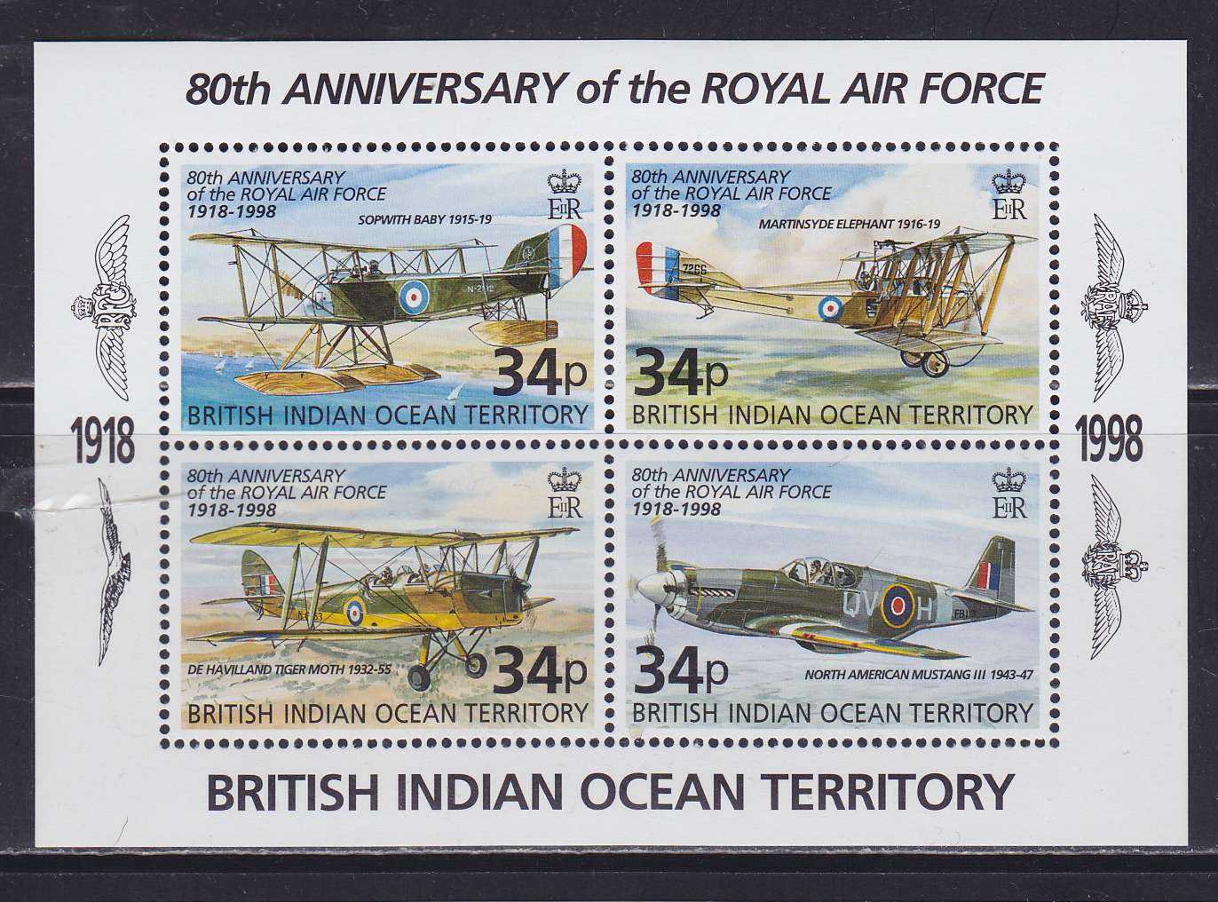 | N149005 | Британские территории Индийского океана 1998. Самолеты. Сувенирный лист (**) (Scott08-11$) |  | 795 |  |