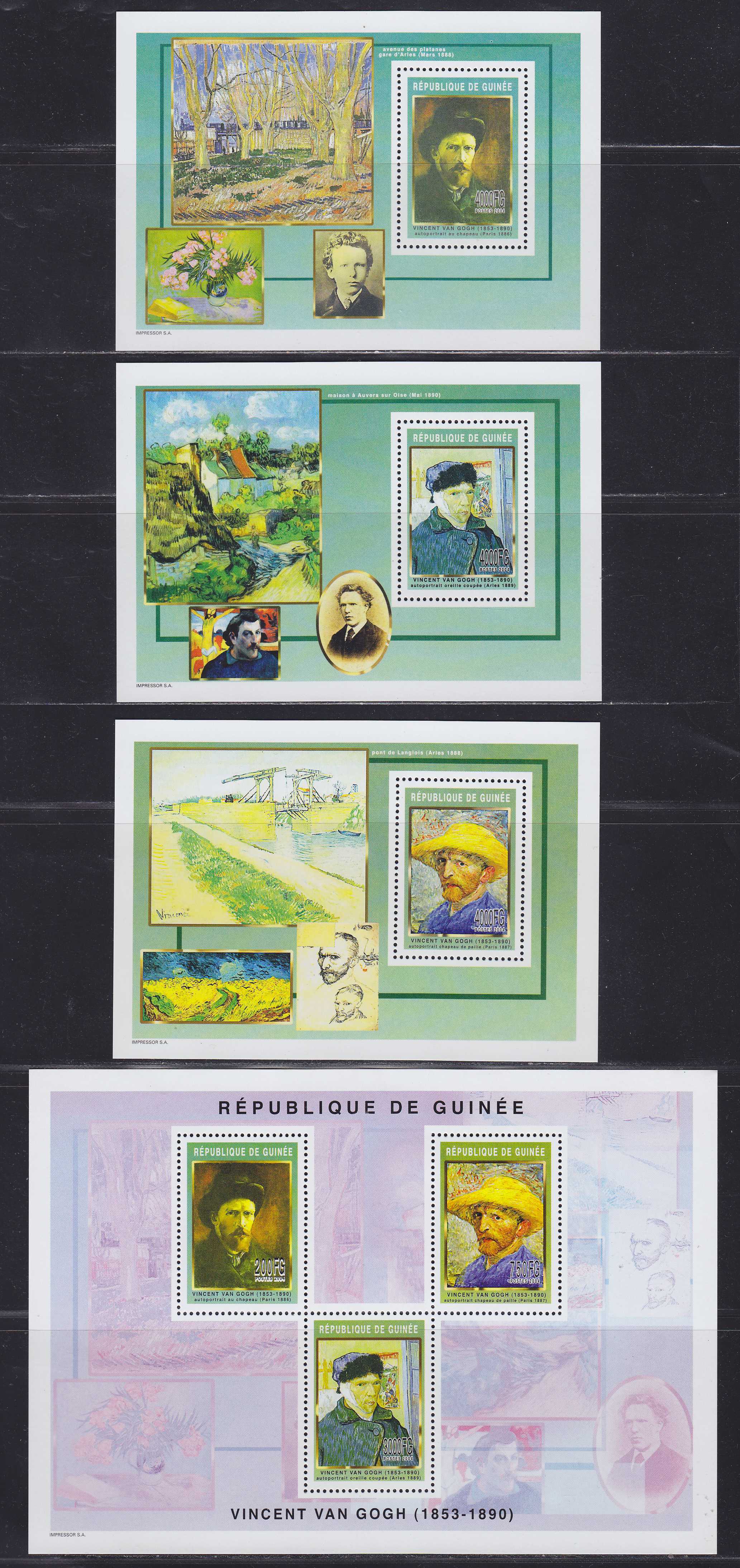 | N148867 | Гвинея 2004. Живопись Ван Гога. Серия 4 сувенирных листа (**) |  | 1585 |  |
