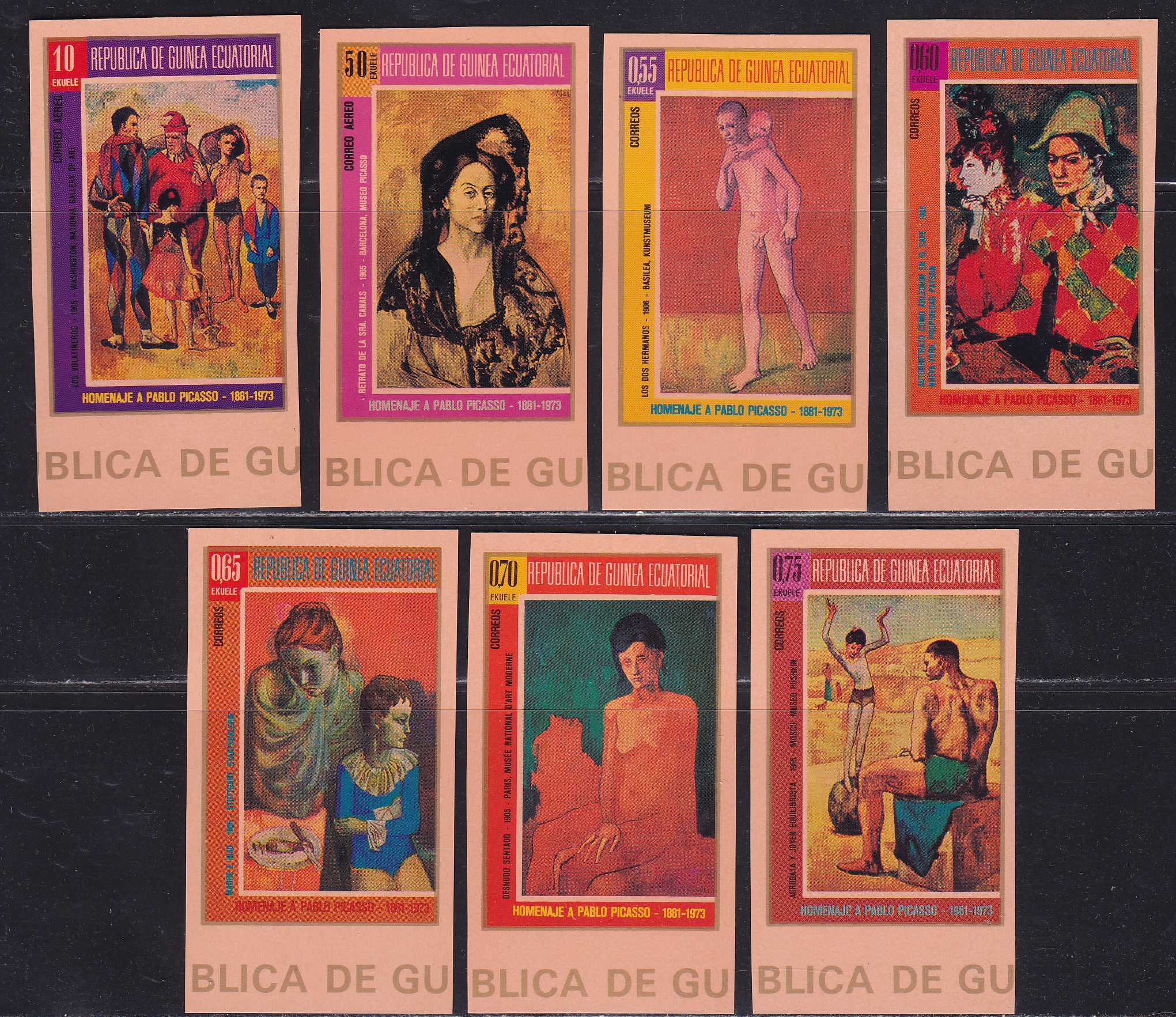 | N148870 | Экваториальная Гвинея. Живопись Пикасо. Серия 7 марок без зубцов (**) |  | 1010 |  |