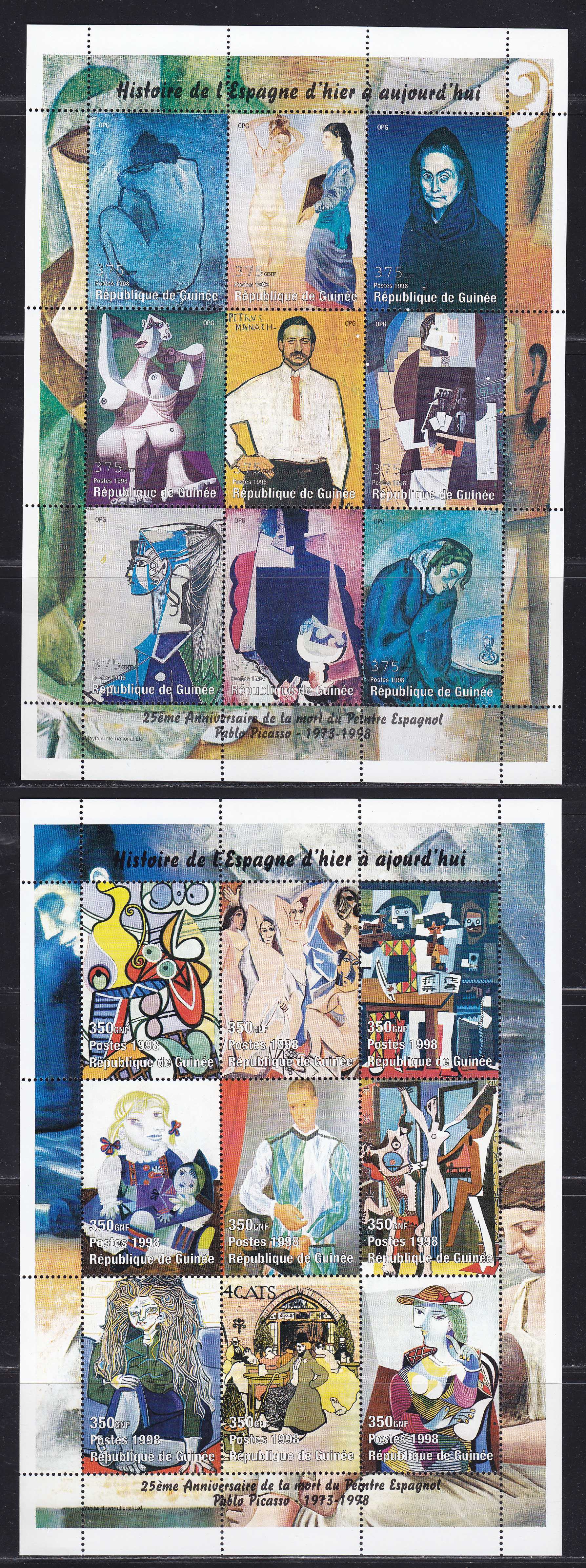 | N148881 | Гвинея 1998. Живопись Пикассо. Серия 2 сувенирных листа по 9 марок (**) |  | 960 |  |
