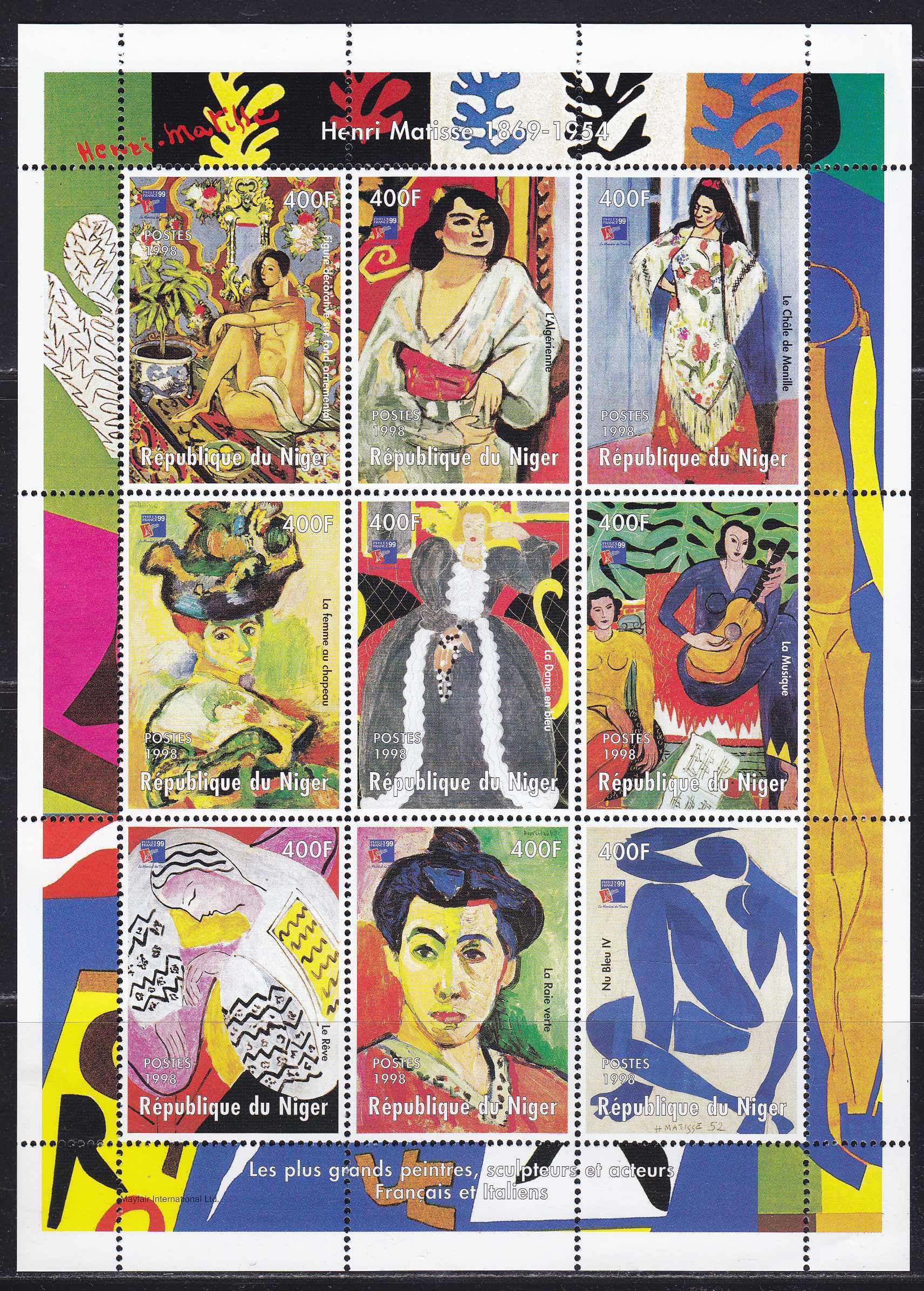 | N148882 | Нигер 1998. Живопись Матисса. Сувенирный лист 9 марок (**) |  | 480 |  |