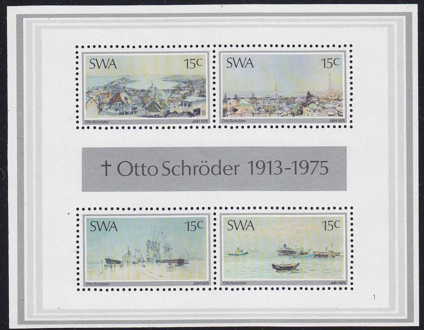 | N148815 | Юго-западная Африканская республика 1975. Живопись и корабли. Сувенирный лист 4 марки (**) |  | 360 |  |