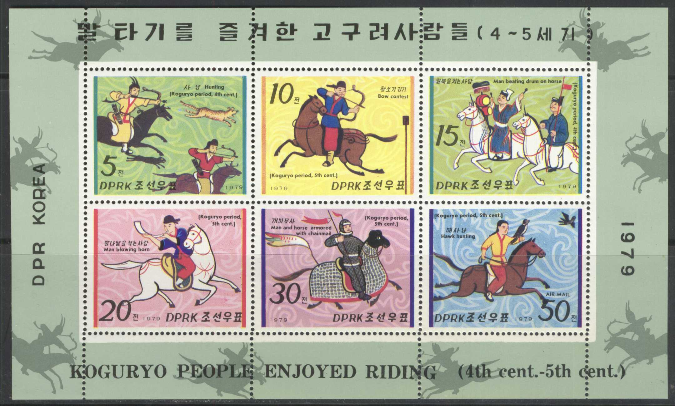 | N148689 | Корея 1979. Лошади и всадники. Сувенирный лист 6 марок (**) |  | 650 |  |