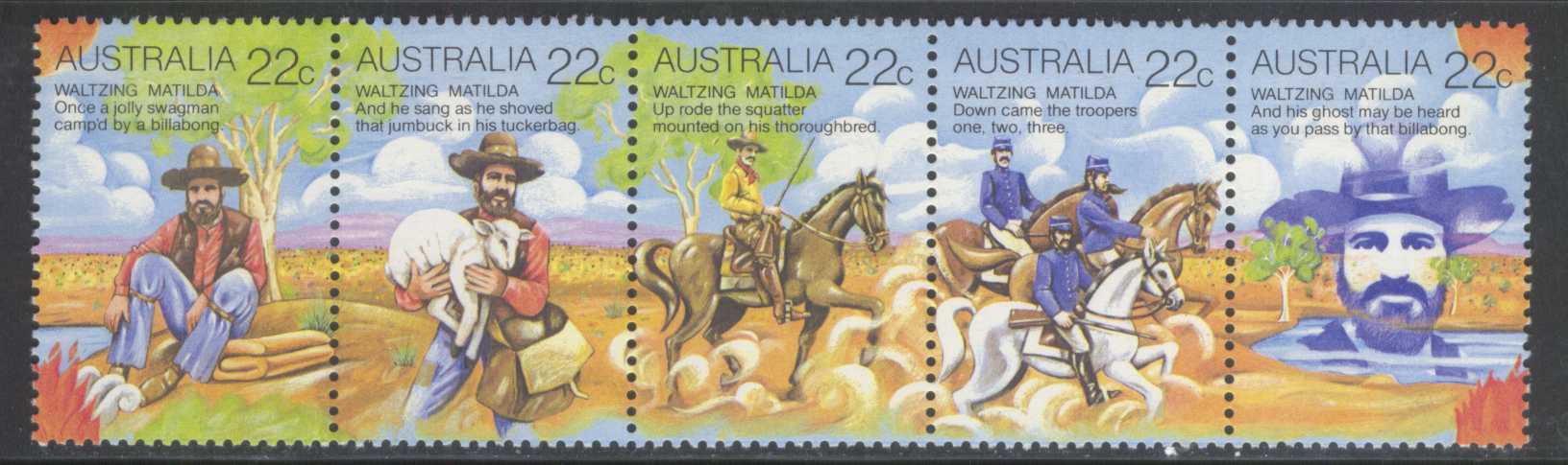 | N148690 | Австралия. Лошади и всадники. Серия 5 марок в сцепке (**) |  | 290 |  |