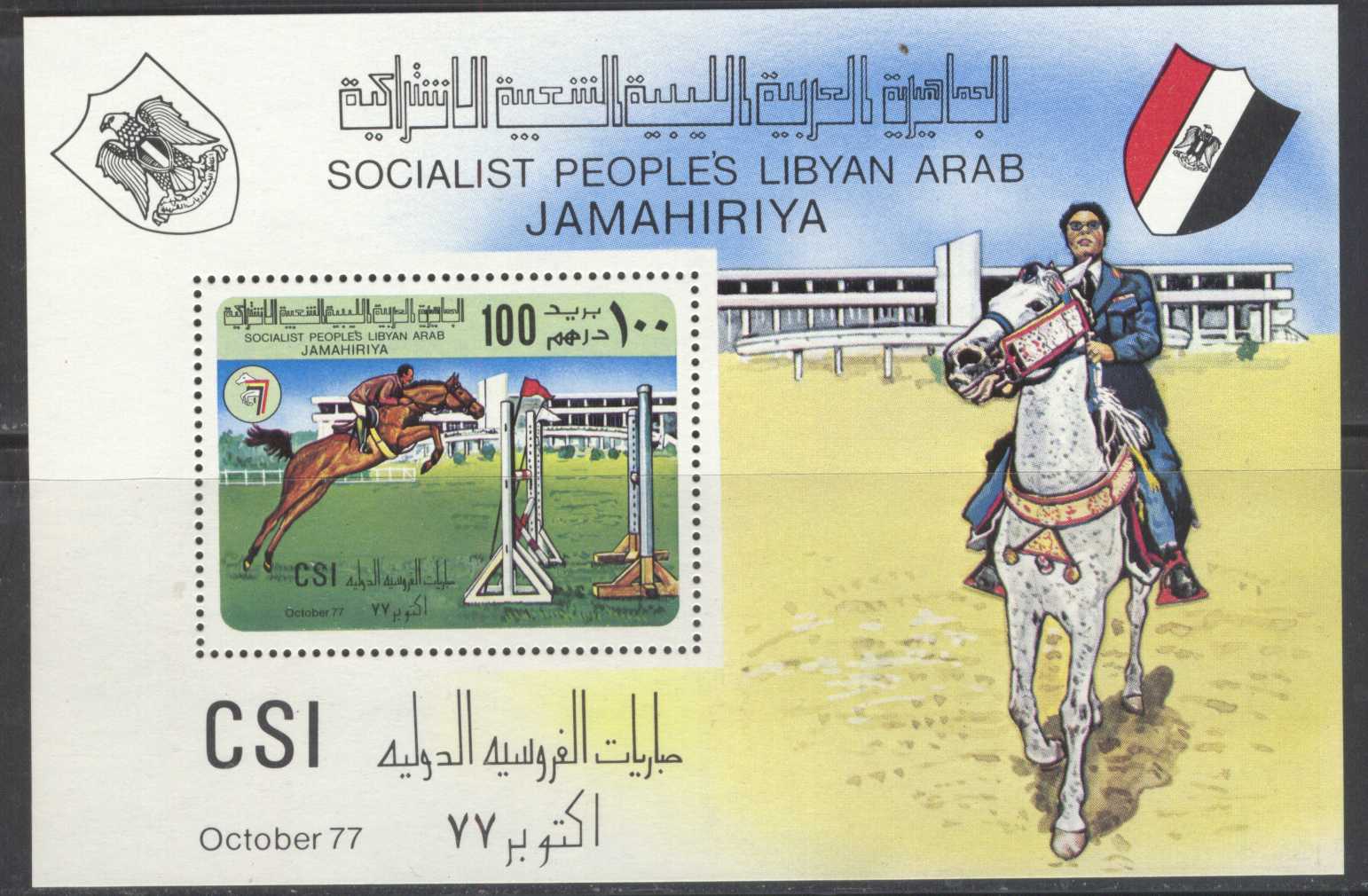 | N148693 | Ливийская Арабская Джамахирия 1977. Конный спорт . Сувенирный лист (**) |  | 360 |  |