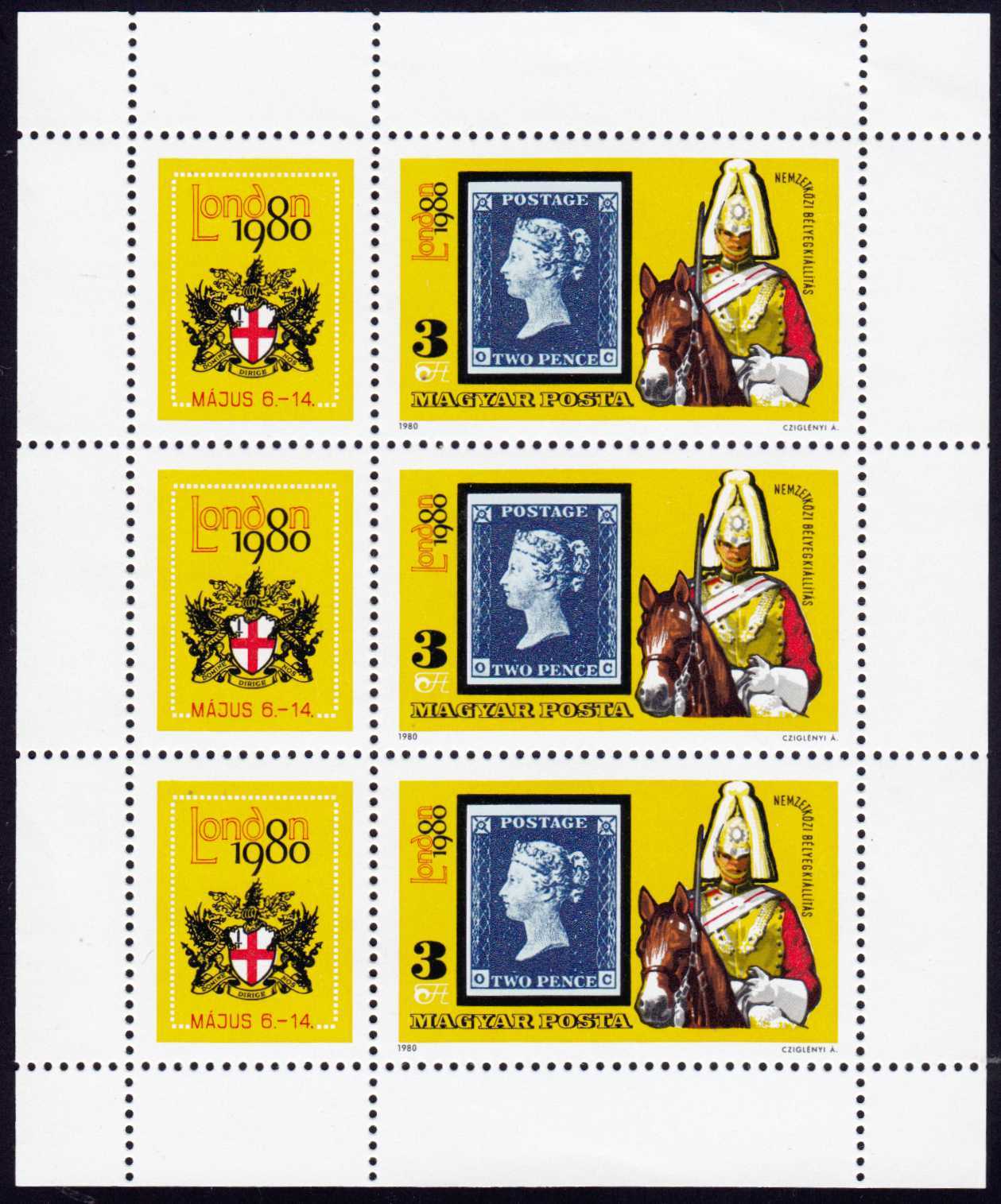 | N148704 | Венгрия 1980. Лошади и всадники. Сувенирный лист 3 марки с купонами (**) |  | 290 |  |