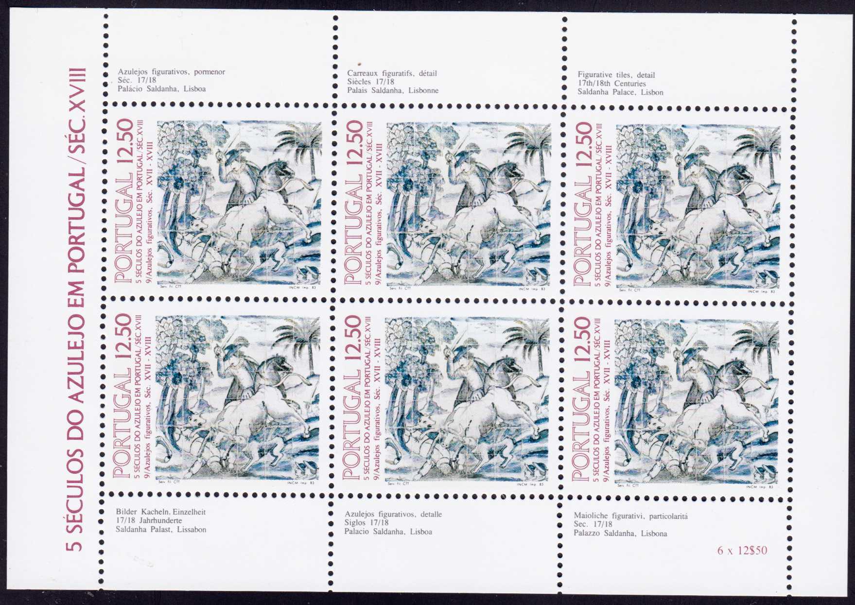 | N148707 | Португалия 1983. Лошади и охота .Сувенирный лист 6 марок (**) |  | 435 |  |