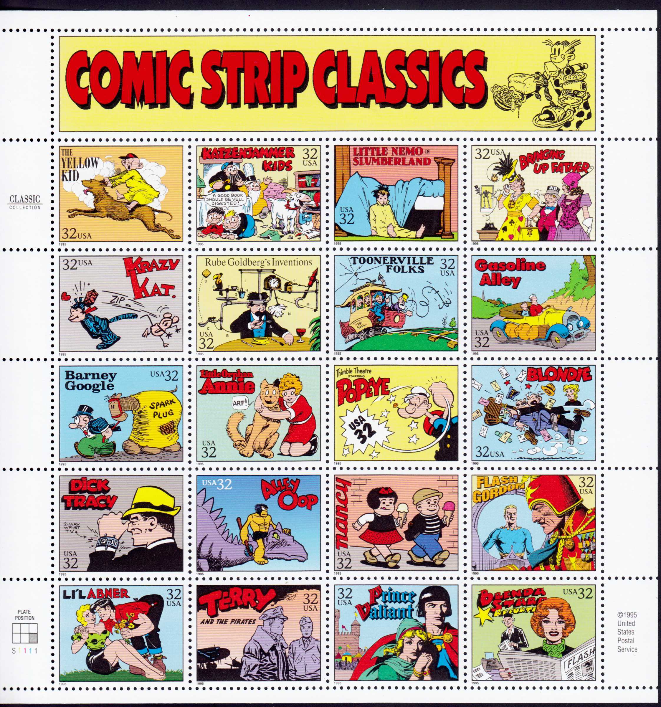 | N148651 | США 1995. Динозавры и комиксы. Сувенирный лист 20 марок (**) |  | 780 |  |
